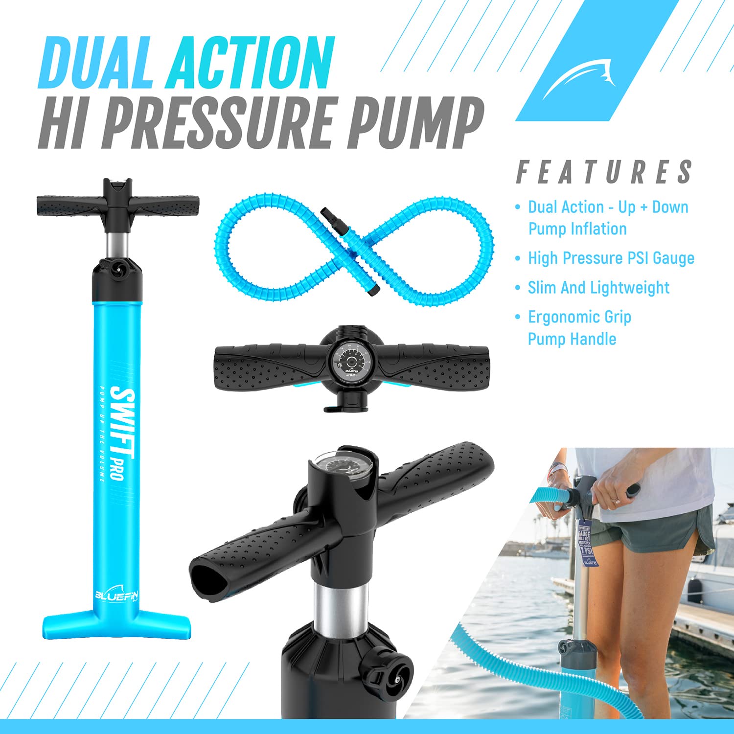 • SMART LOCK FIN & DOUBLE ACTION PUMP: Our versatile centre fin provides ultimate glide and versatility. Double action pump inflates Cruise on both the UP & DOWN portion of every pump to pump your inflatable paddle board up quickly and efficiently.