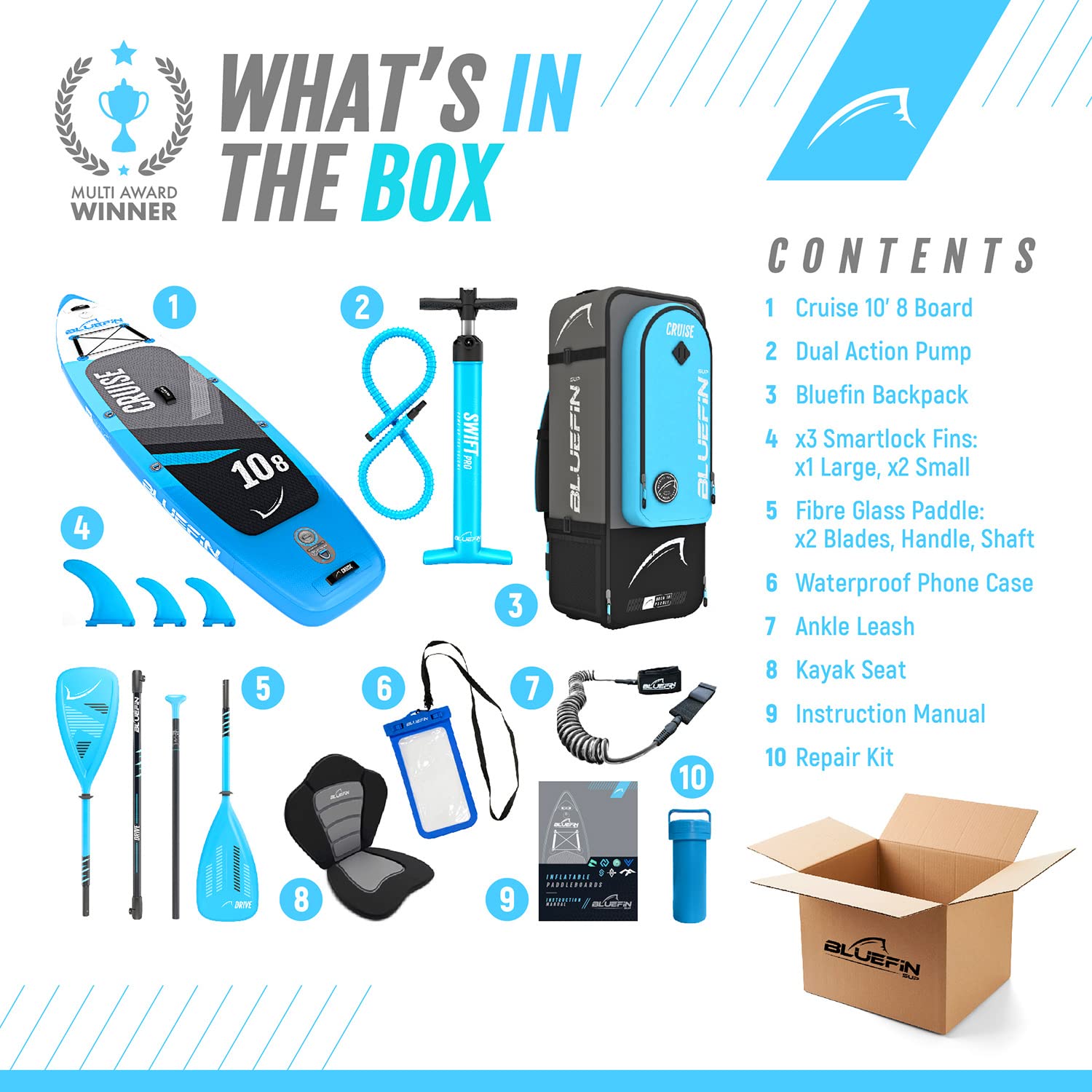 Bluefin SUP 10'8'' Inflatable Stand Up Paddle Board, Blue, Including Accessories & 5 Year Warranty