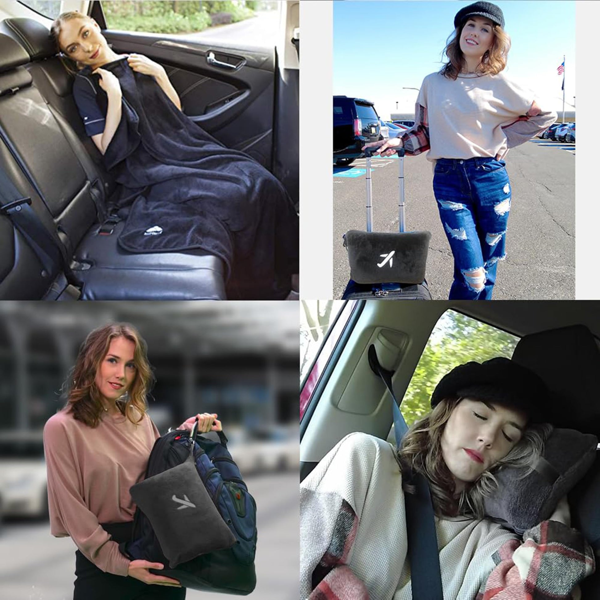• Lightweight & Compact Blanket Pillow Combo: Our lightweight, super compact blanket fits easily into hand luggage and backpacks while being almost weightless and leaving plenty of empty space. This is a great small, packable travel blanket that is warm and cozy, and is a great travel accessory available in an assortment of colors.