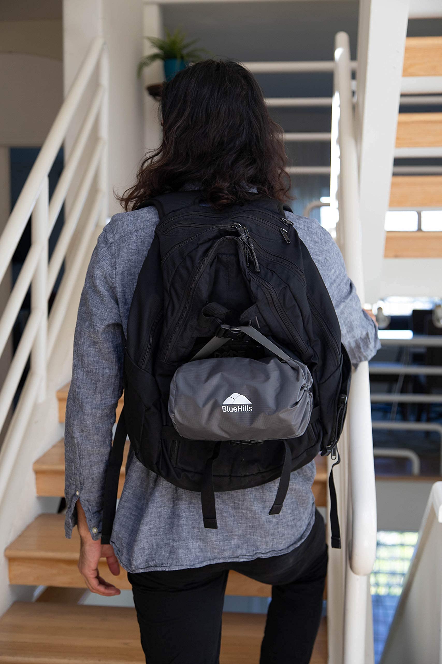 BlueHills Ultra Compact Travel Blanket Pillow in Portable Bag Case Soft 70 X 56 with Strap Backpack Clip Premium Cozy Soft Compact Pack Large Blanket for Airplane Flight Layover Grey - Gray C002