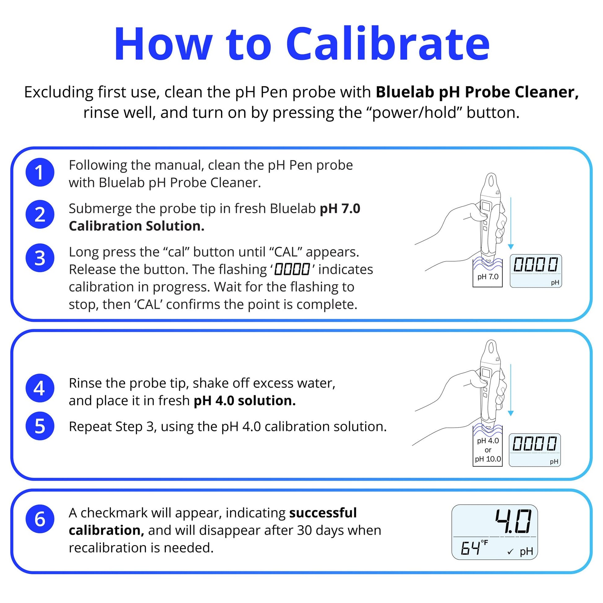 • Easy calibration - Set up our digital pH meter with a two-point calibration process. Calibrate the handheld meter before first use. Each digital pH meter for soil and water comes with a 30-day calibration indicator that can be viewed on a backlit LCD display. The kit includes one 20-ml sachet of each pH7, pH4, and KCl for initial hydration and calibration.