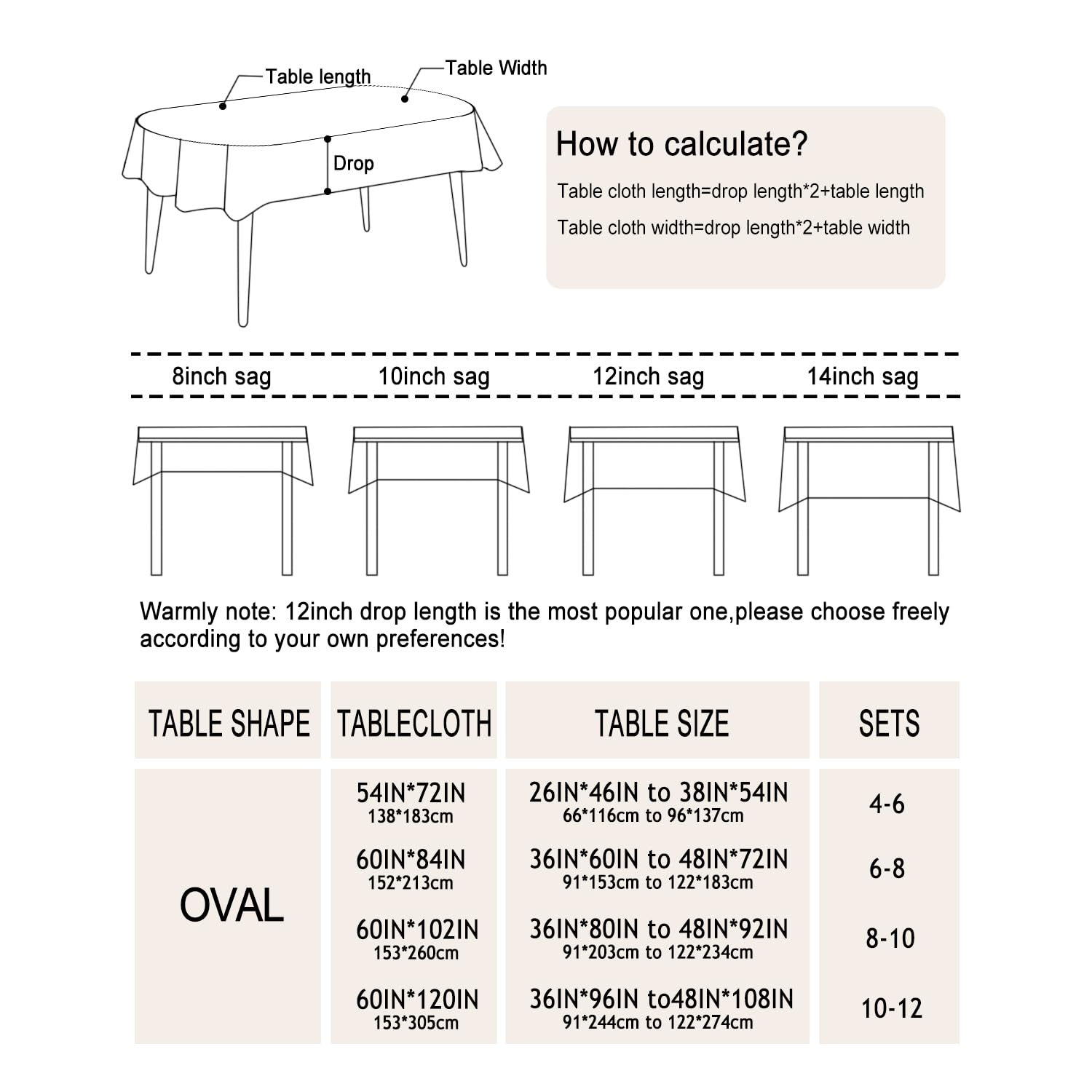 • Four Size: 54” X 72” ( 137 X 183 Cm ),60” X 84” ( 152 X 213 Cm ), 60” X 102” ( 152 X 259 Cm ), 60” X 120” ( 152 X 305 Cm). The Flowers Oval Table Cloth Is Suitable For Most Household Oval Table, Please Measure Your Table Size Before Buying.