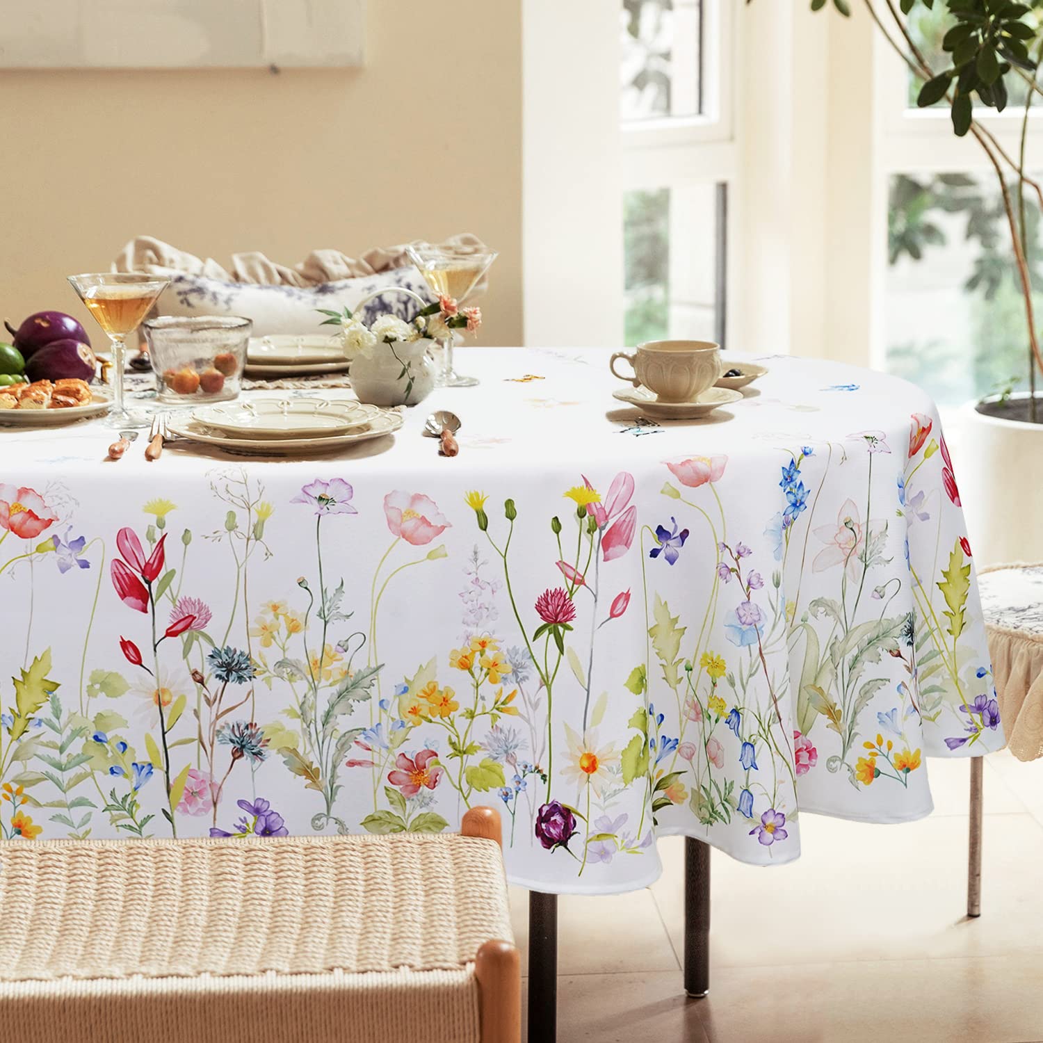 Bnejvif Spring Floral Oval Tablecloth - Waterproof Wrinkle Free Durable Fabric for Spring Summer Tables, Flower Print 54 X 72 Inch