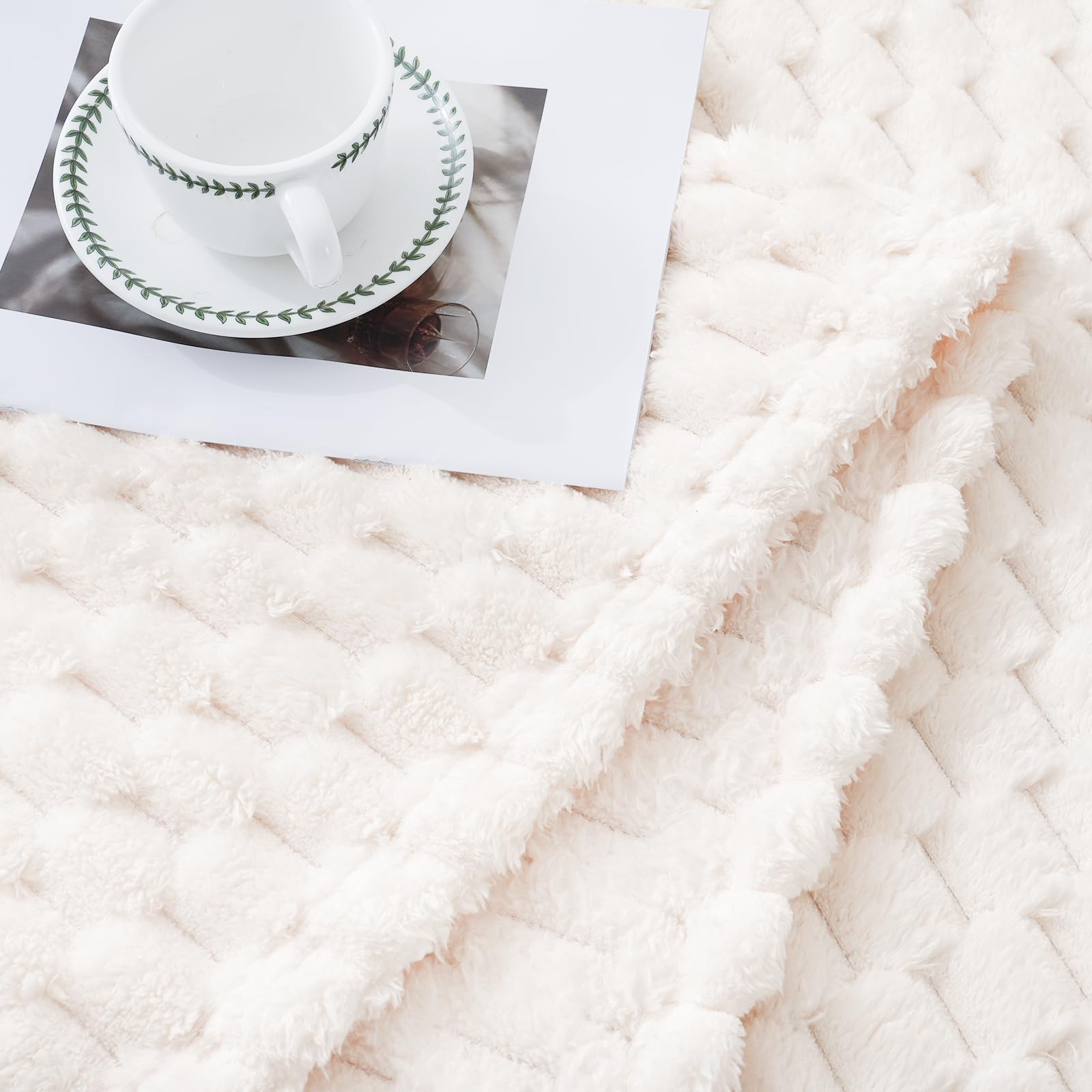 Bnuitland Ivory Super Soft Flannel Throw Blanket, 3D Clouds Stylish Jacquard Lightweight Blanket for Bed,Sofa,Couch,Home Decor, 300 GSM Fleece Cozy Warm, Suitable for All Seasons, 50X70 inches