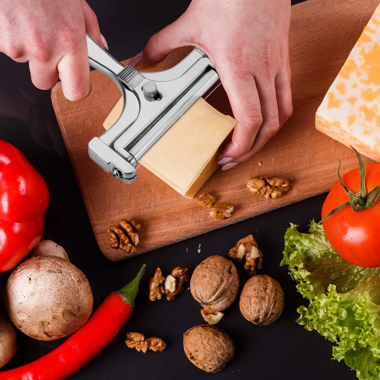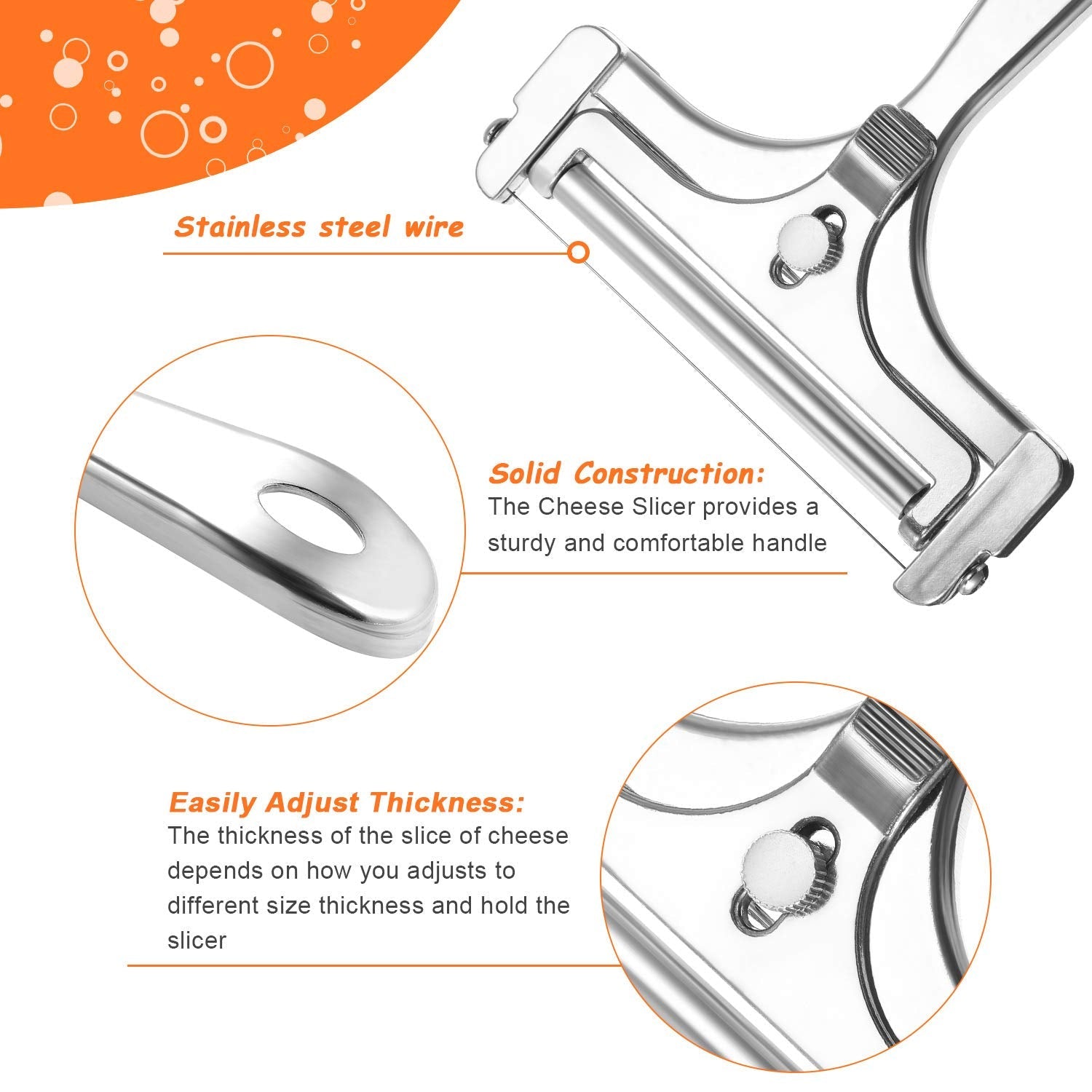 • Easy to use and clean: not dishwasher safe!the stainless steel cheese slicer can help you make cheese blocks to cheese slice easily, you can wipe it with a rag or use soap and water to clean cheese slicer easily after using