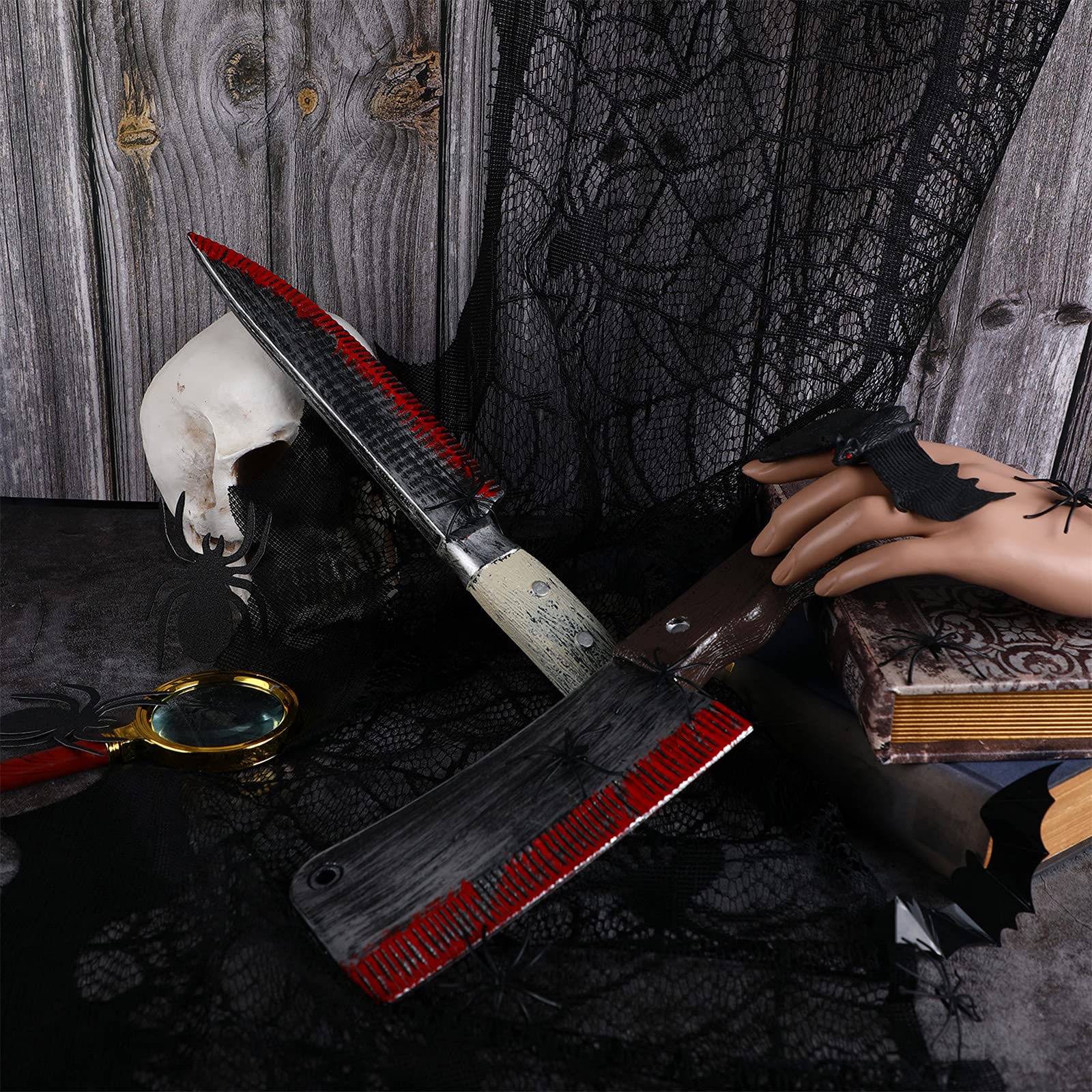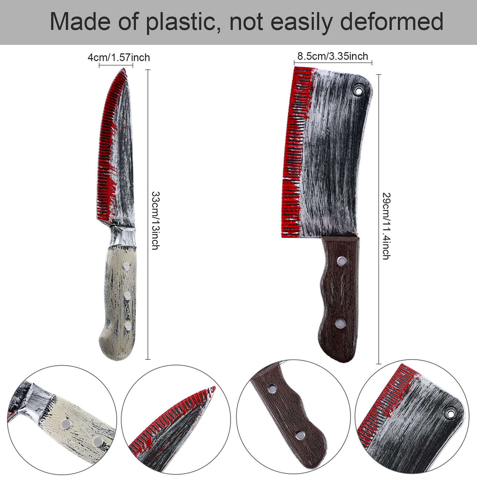 Boao 2 Pieces Fake Knife Party Supplies, Halloween Realistic Plastic Knife Prop for Horror Party Role Playing,Toy for Halloween Costume Accessory(Style 3)