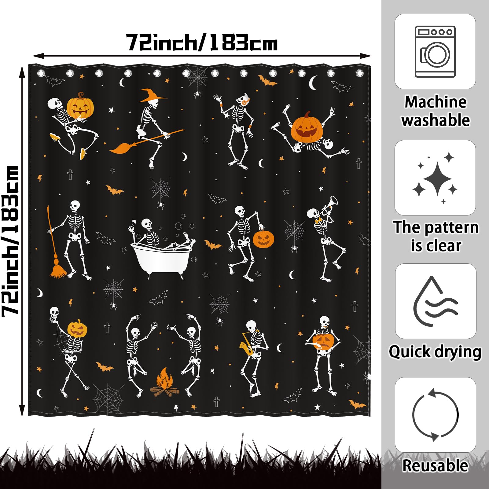 • Large-Size Shower Curtain: You will receive a 72-inch x72-inch Halloween shower curtain. The large-size design ensures that skeleton shower curtain can ideally cover the bathroom space, provide all-round shelter for your bathing place, effectively avoid water droplets from splashing, and keep the bathroom clean and tidy