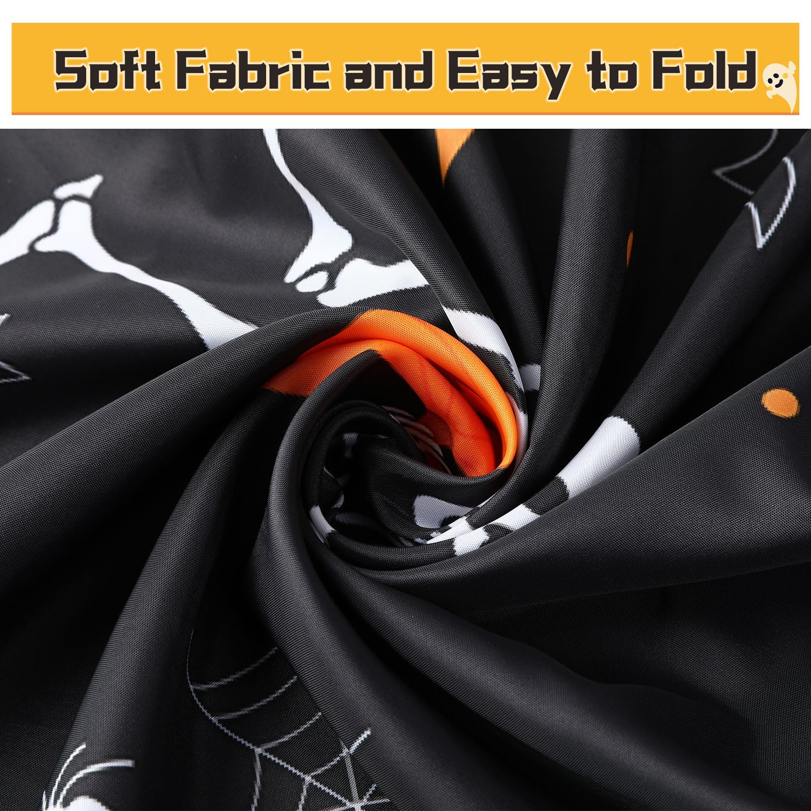 • Halloween Theme: The skull shower curtain is designed with Halloween as the theme, incorporating cobwebs, pumpkins, brooms, bathtubs and various lovely skeleton elements, adding a mysterious and interesting festival atmosphere to your bathroom. Whenever you walk into the bathroom, you can feel the unique charm of Halloween, which makes the bathing time more enjoyable