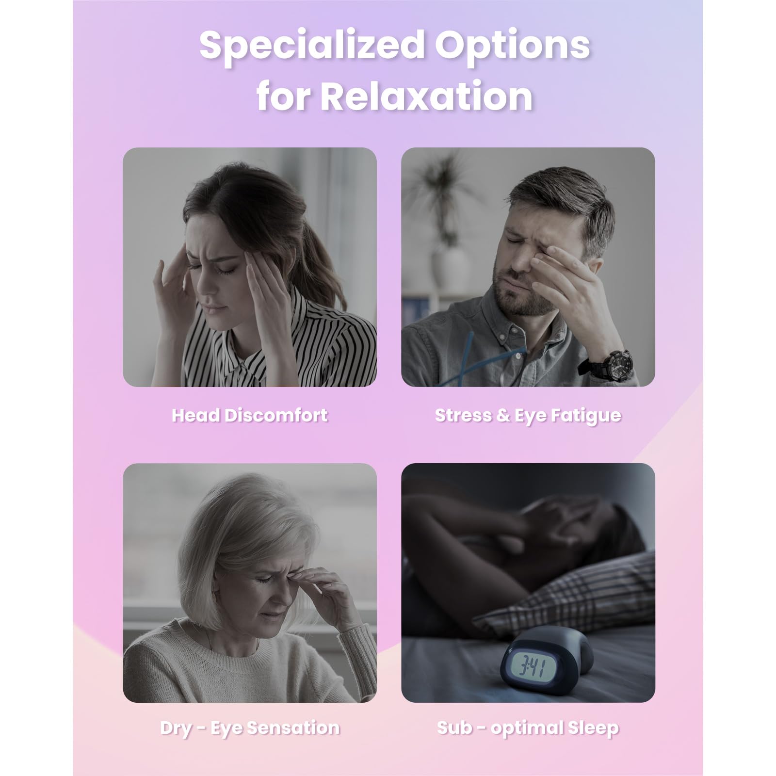 • Quieter Motor & Customizable Music - Our upgraded electric eye care device incorporates low-noise technology reduces audible noise from 60dBA to just 45dBA, so that you can enjoy a low-noise, comfort, warm nap. The built-in white noise music helps to reduce anxiety and can be turned off at your convenience. You can also connect the massager to your phone or tablet to play your own playlist. Simply wear it for 15 minutes before going to bed every night to relax and enjoy a better night's sleep