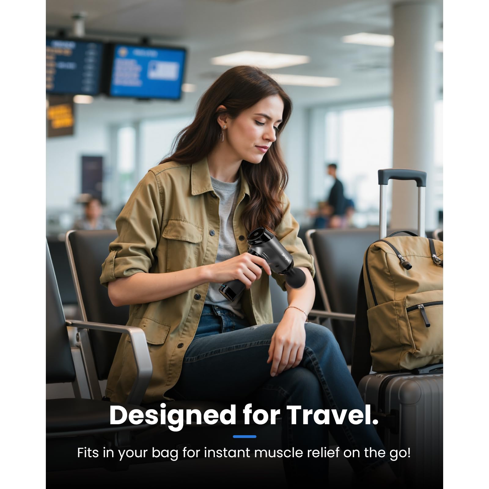 • Quiet and Portable Massage Gun: Designed for on-the-go relief (Weighing just 1.9 lbs), this compact massage gun fits effortlessly in your gym bag, backpack, or suitcase. Its ultra-quiet operation (<45dB) makes it perfect for office use, travel, or home without disturbing others. Lightweight yet powerful, it delivers instant relief anytime at home or away. The essential companion for myofascial release and everyday aches and pains.
