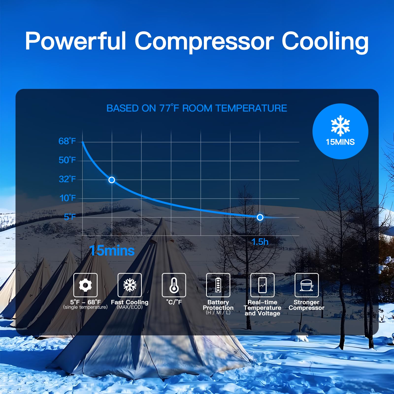 • Car Protection Systerm: BODEGA Car Fridge 12v offer 3 different levels (H/M/L) protection function, effectively avoid exhausting the car power, so you don’t have to worry about running out of car power when using the 12 volt fridge. Adopt strong DC Compressor refrigeration technology, with high quality, long working life and fast cooling performance. Adjust the temperature of the portable fridge from -4 ℉-68 ℉ (-20 ℃-20 ℃) as your need