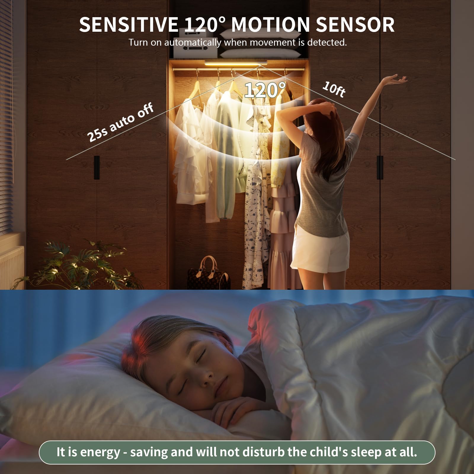 • Intelligent body sensor: When you set the LED cabinet lighting with motion sensor to the motion sensor mode, they automatically turn on when human movement is detected within 120° and 3M in a dark or dimly lit environment, and automatically turn off when no motion is detected for 25 seconds. You no longer have to worry about tripping over the level in the dark when you try to turn on the switch.