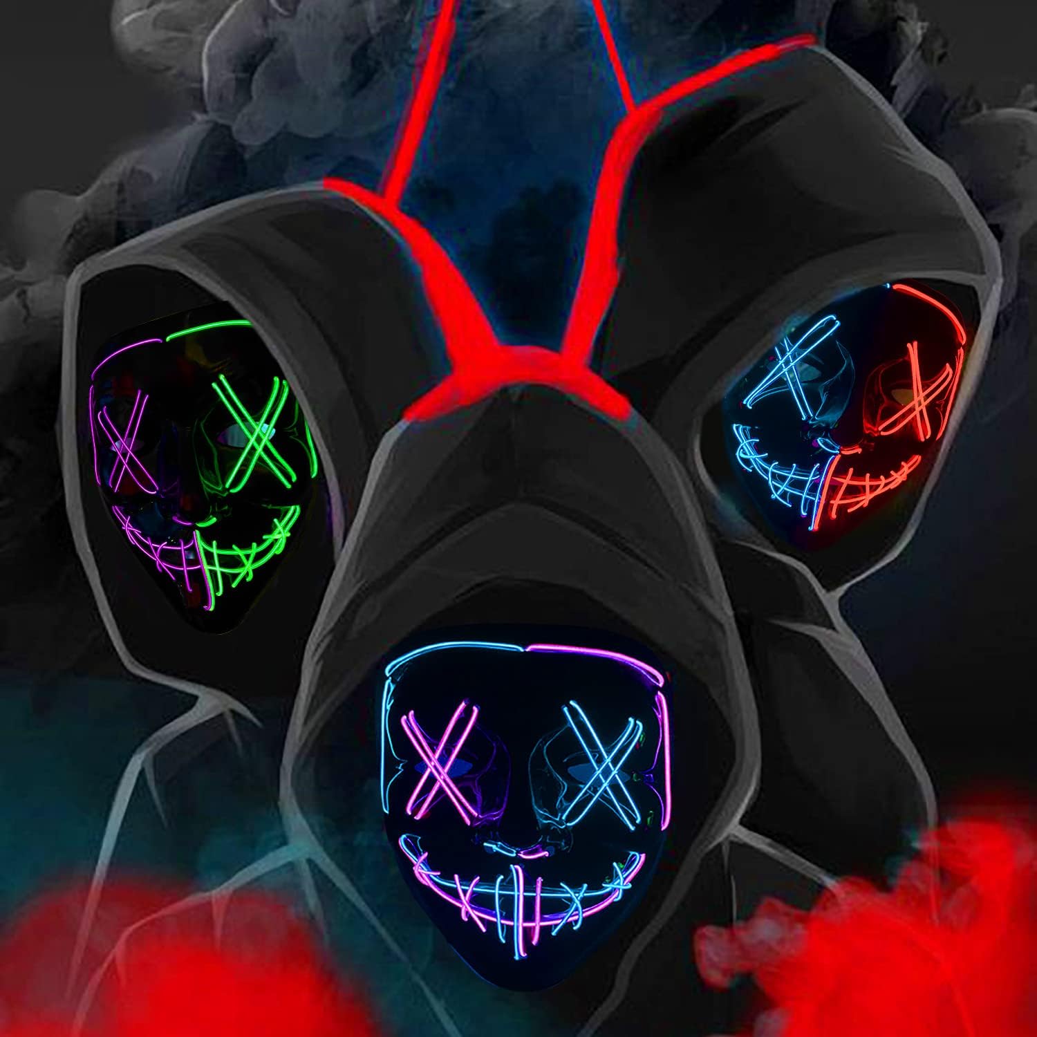 • Light Up Halloween Atmosphere: Our Halloween purge mask light up is designed with unique creativity to light up the mysterious atmosphere. Purge mask light up is perfect for Halloween, masquerade, rave party, disco, club, birthday party, gift, festival