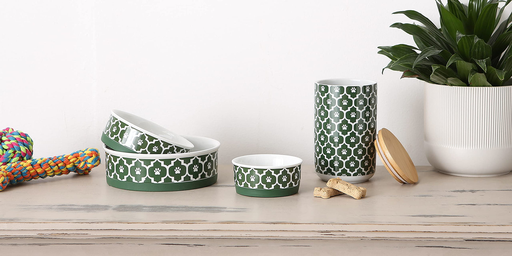 Bone Dry Lattice Collection Pet Bowl & Canister, Small Set, 4.25x2 inches, Hunter Green, 2 Piece