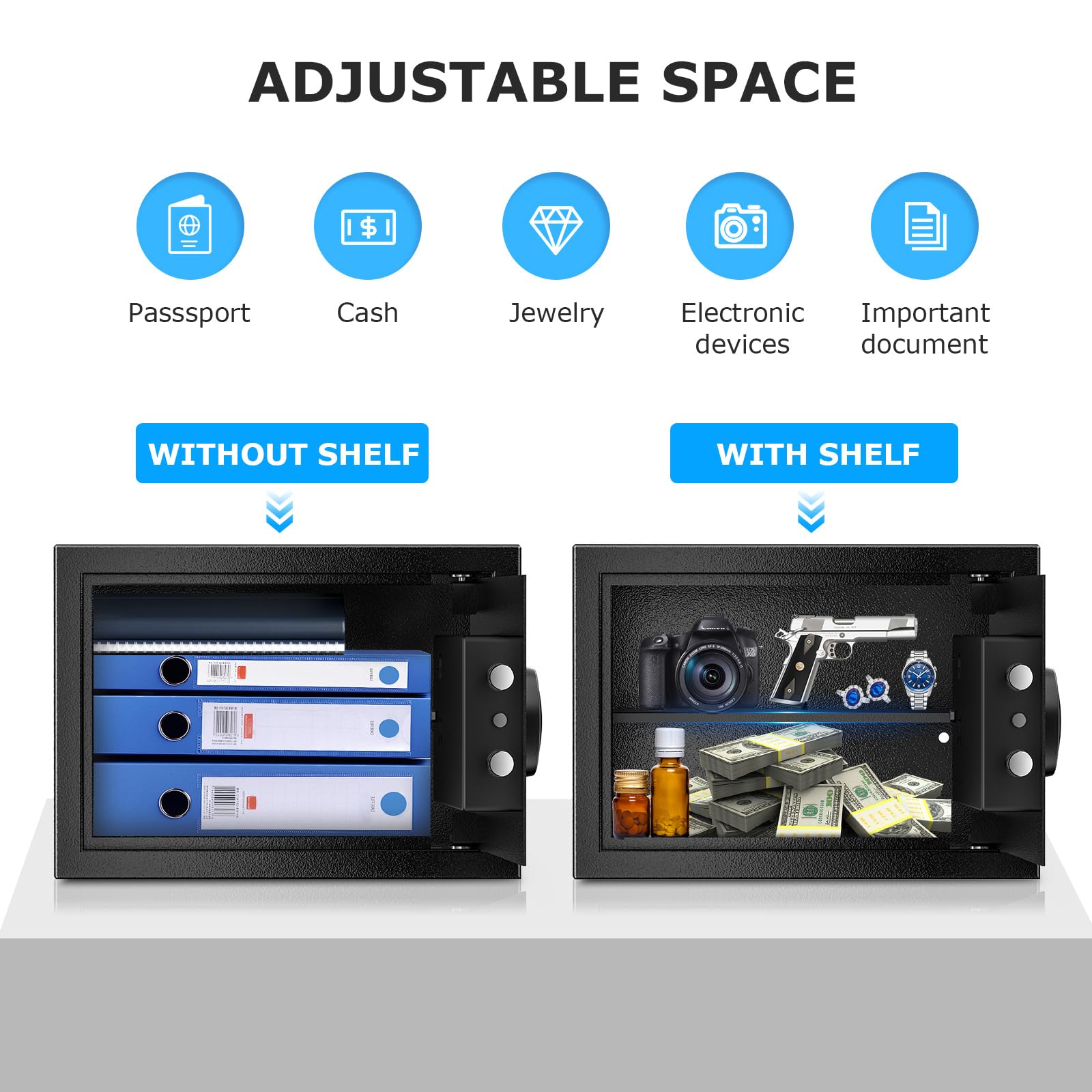 • 0.6 CUBIC FEET CAPACITY: The bonsaii lockable storage box comes equipped with a removable shelf, offering flexible storage options for consumers' valuables; It can securely store important documents and jewelry with ease.