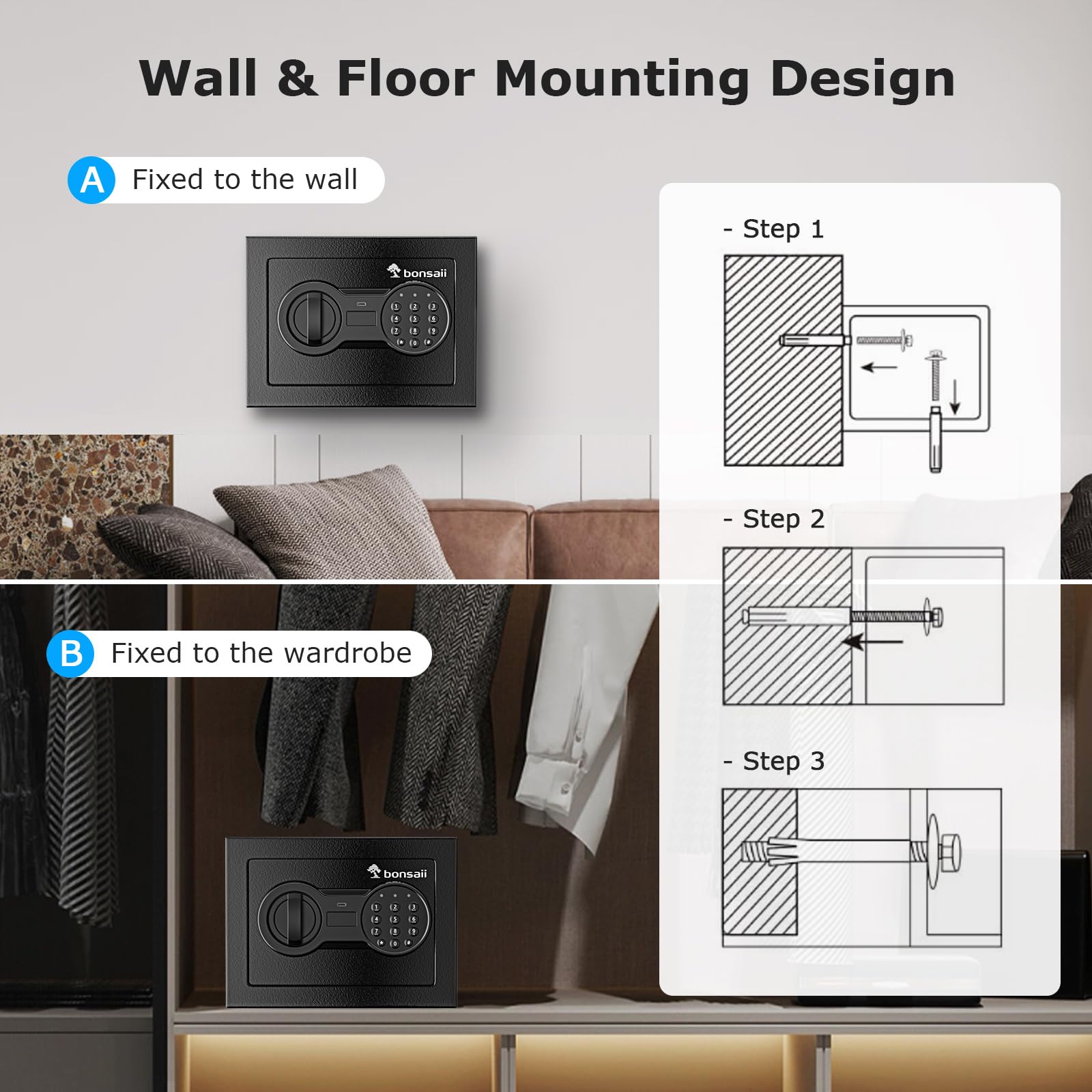 • Easy to Install: The back and bottom of the Bonsaii money safe are equipped with two pre-drilled installation holes, making it easy to install this safe under a closet, drawer, or table