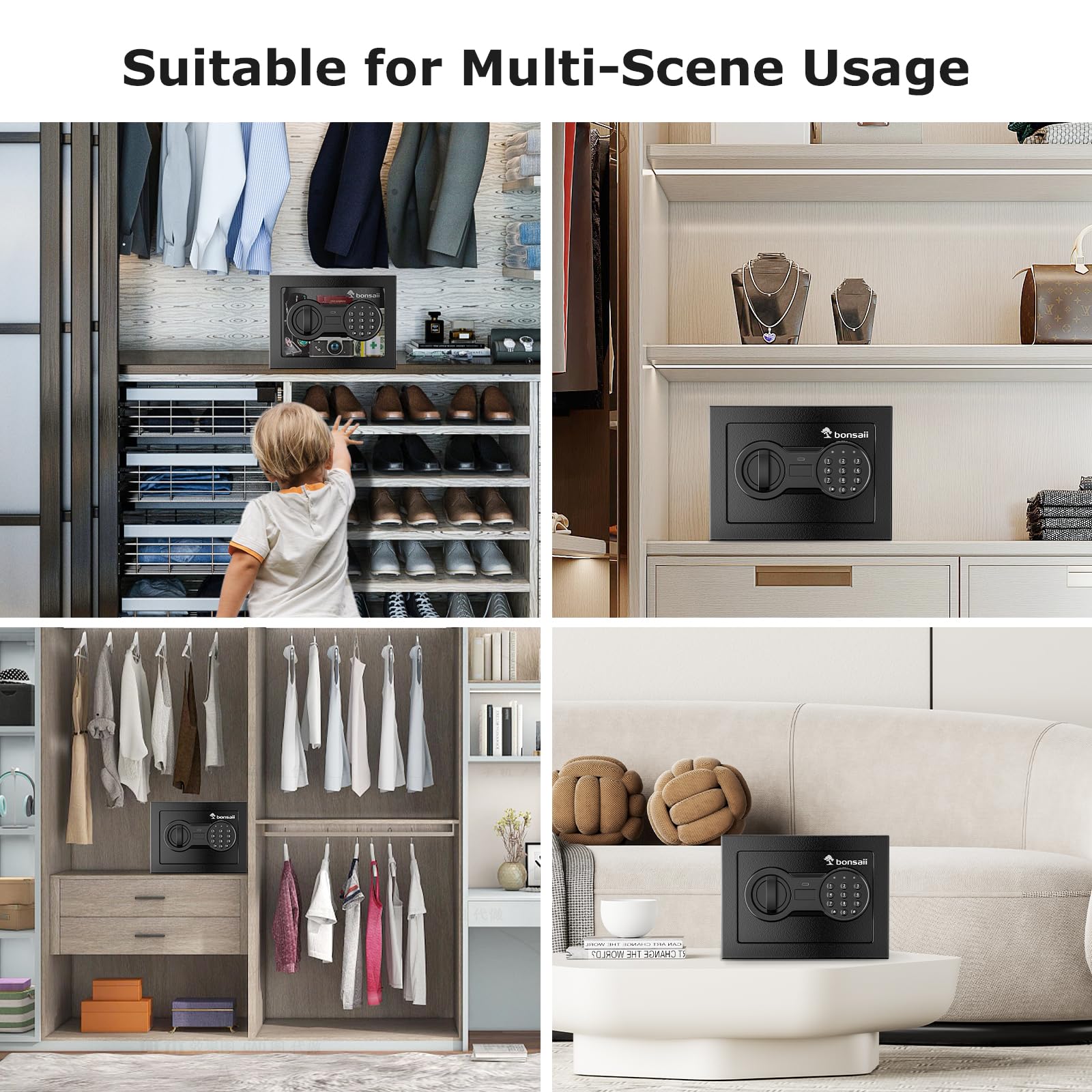 • High-Strength Steel and Durable Materials: Made of durable SPHC steel, the Bonsaii safe comes with two 0.71-inch steel reinforcement bolts, hidden hinges, and pry-resistant doors to prevent unauthorized access
