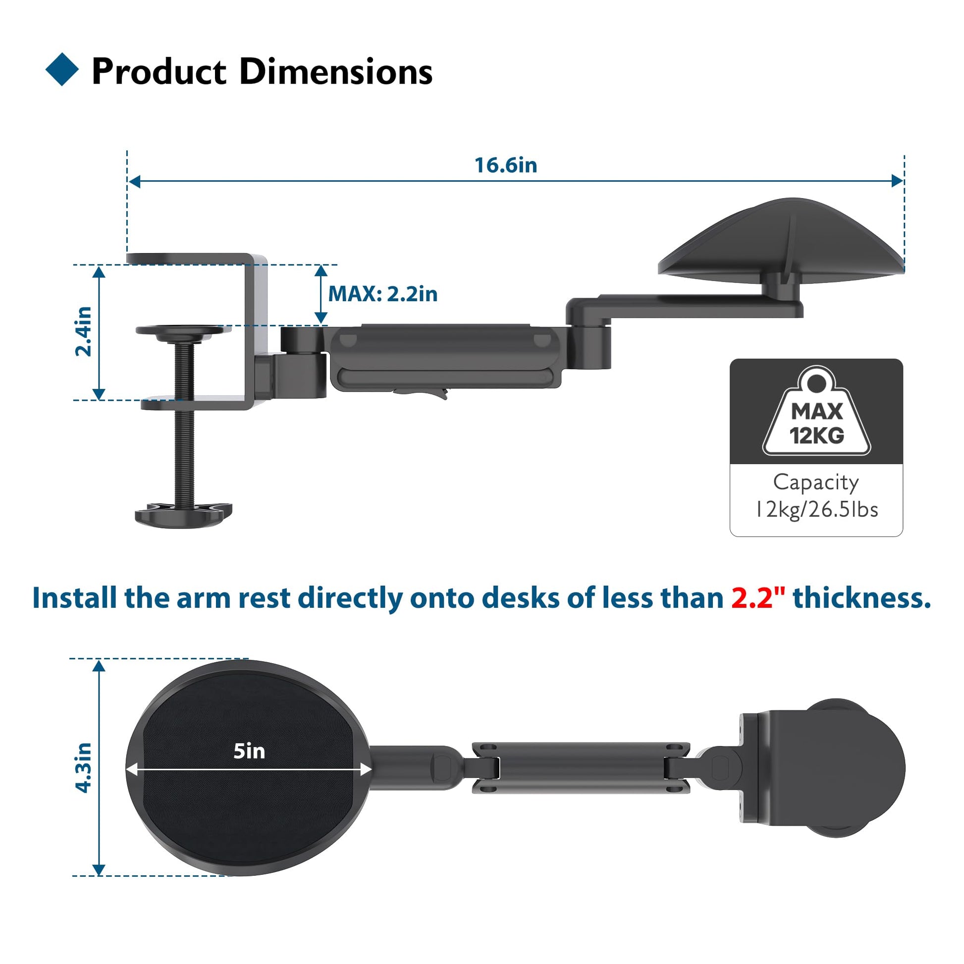 • DURABLE MATERIALS FOR LONG-LASTING SUPPORT – Made from high-quality aluminum, the arm rest is both lightweight and strong. The ABS tray is tough and resistant to cracking, bending, and wear, providing reliable support for your arm or elbow throughout the day. Its high load capacity of 26.5 lbs ensures durability during daily use