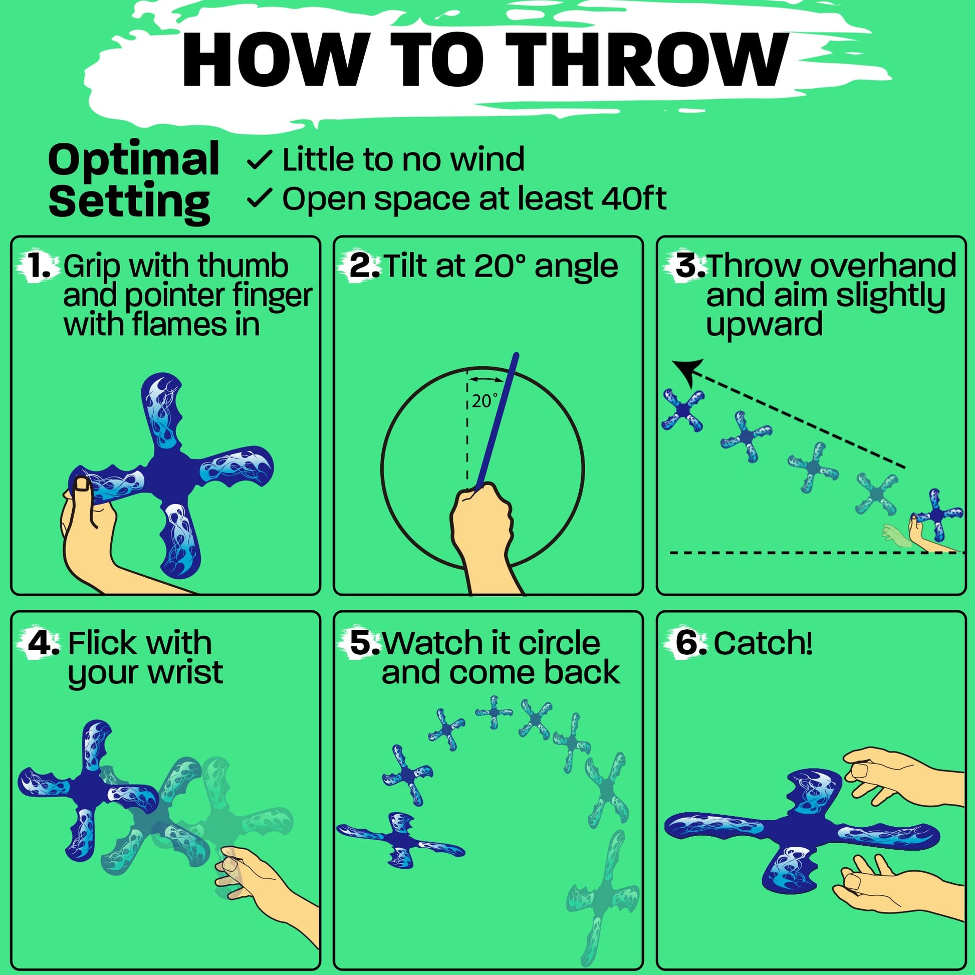 • ๐—˜๐—ฎ๐˜€๐˜† ๐—ง๐—ผ ๐—Ÿ๐—ฒ๐—ฎ๐—ฟ๐—ป: Embrace the simple joy of throwing a boomerang and having it come back to you with ease. With our beginner-friendly easy to throw design crafted from durable EVA foam. It's stable flight and comfortable grip make throwing and catching a breeze, ensuring a quick and enjoyable learning experience for kids age 6 and up.