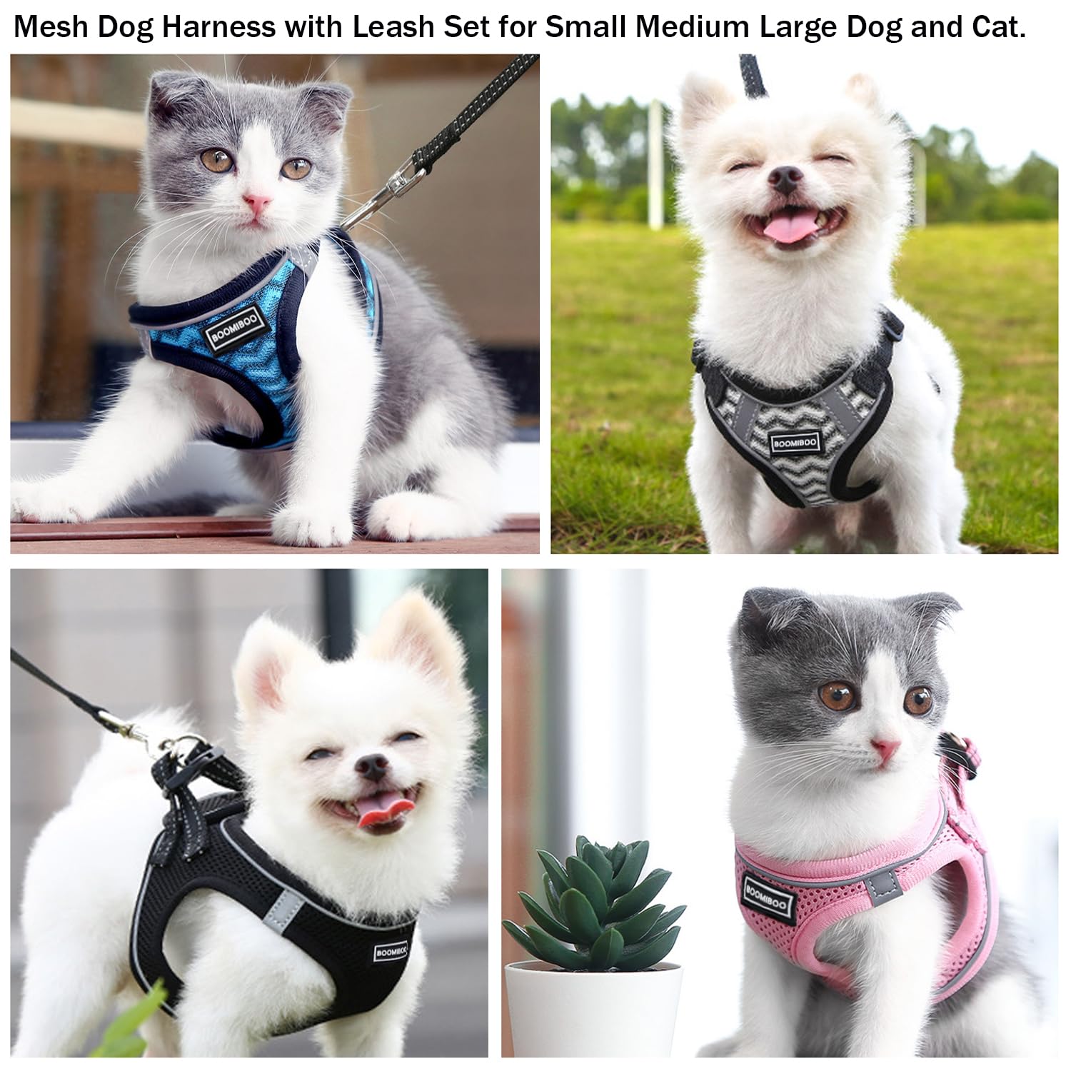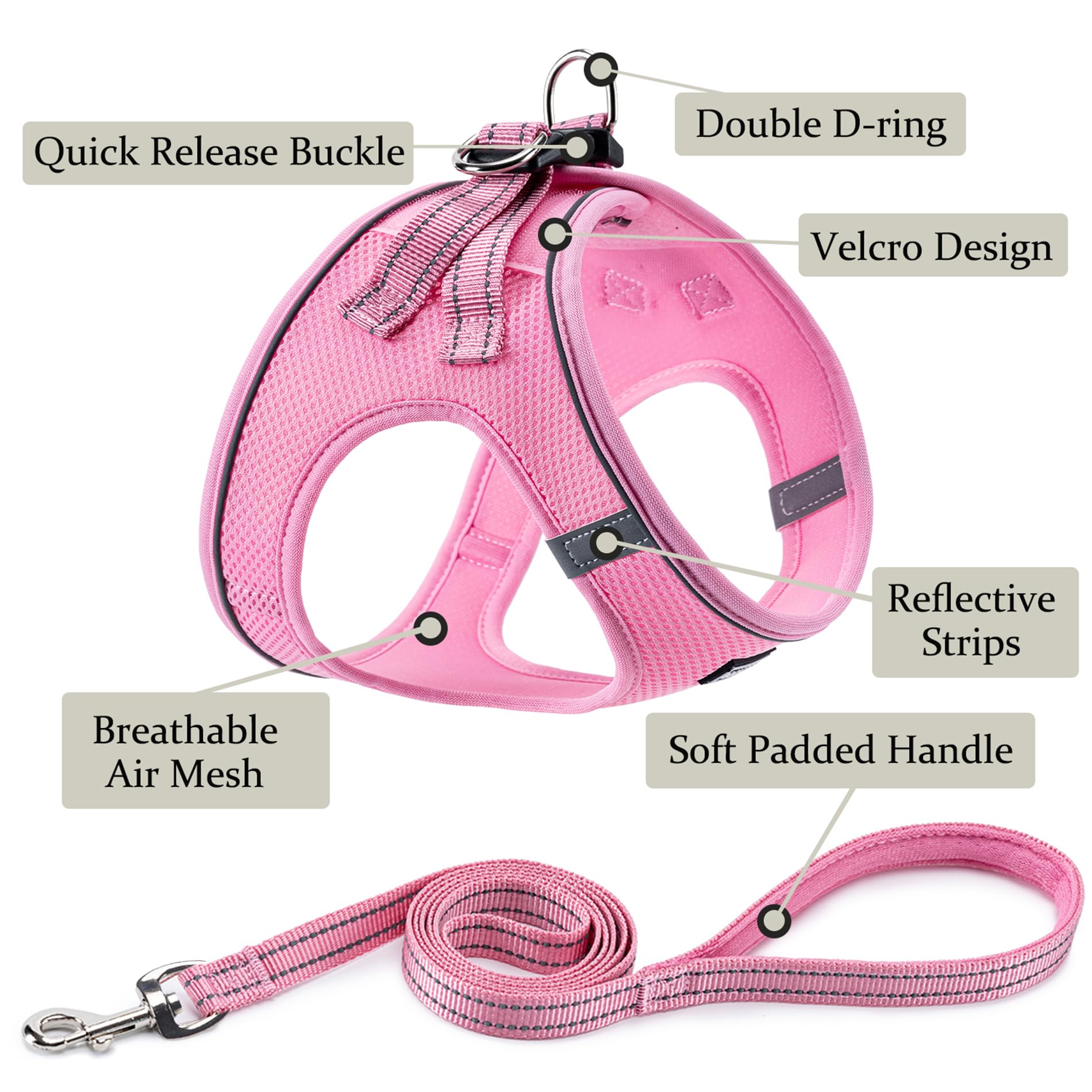 BOOMIBOO Dog Harness with Leash Set, No Pull Adjustable Reflective Step-in Puppy Pet Vest Harnesses for Small Medium Large Dogs and Cats,Pink M