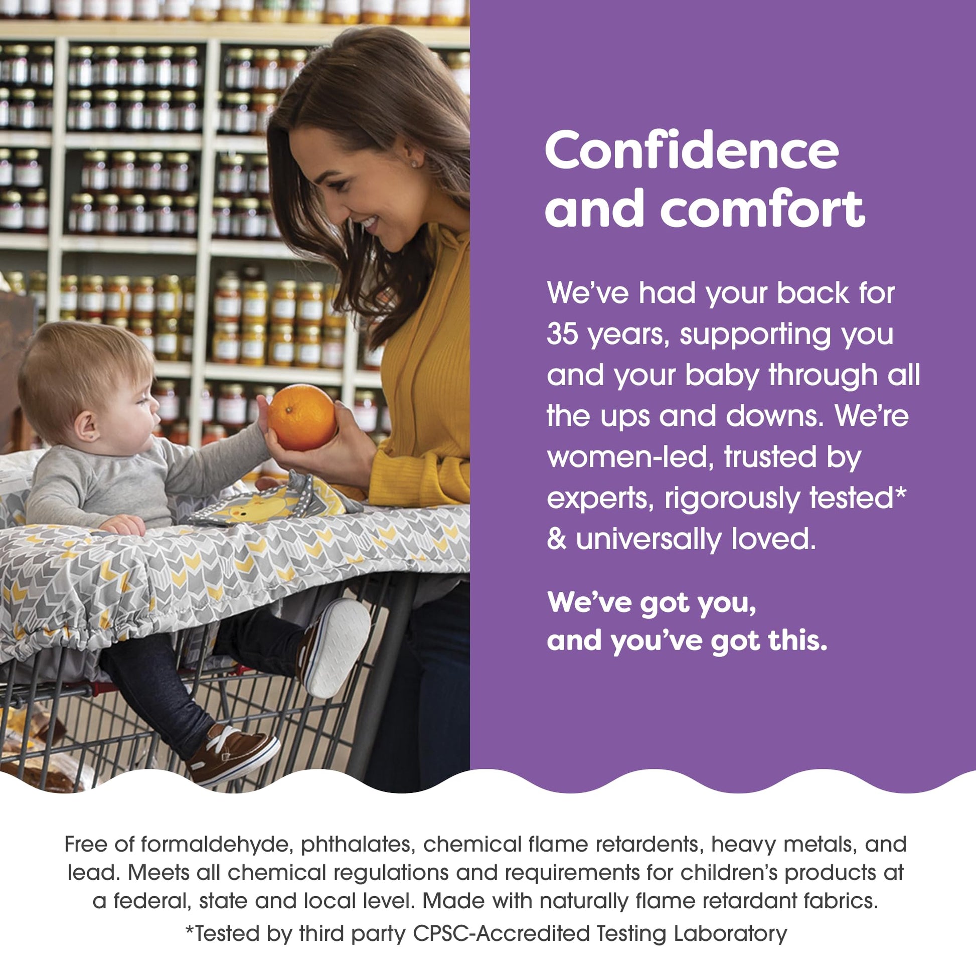• All-Around Comfort: Our shopping cart cover is designed with soft 360-degree coverage with extra cushioning in the leg holes – because happy thighs make happy babies