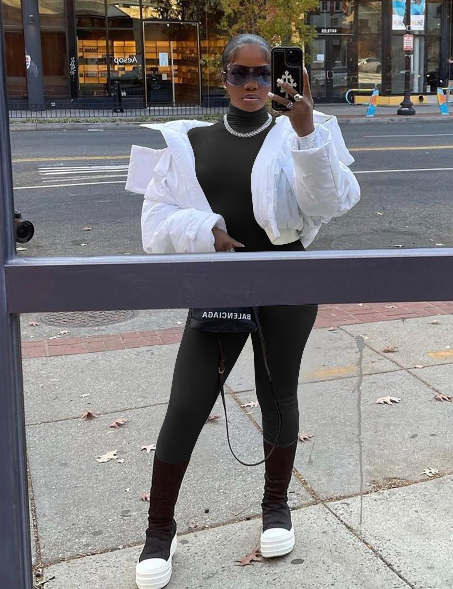 • Design: The full body jumpsuit feature turtleneck design, back with zipper,slim-fitted, jumpsuit with tummy control, basic, simple,dressy, leggings. Fitted like a glove to hugs your curves perfectly. perfect for fall winter spring