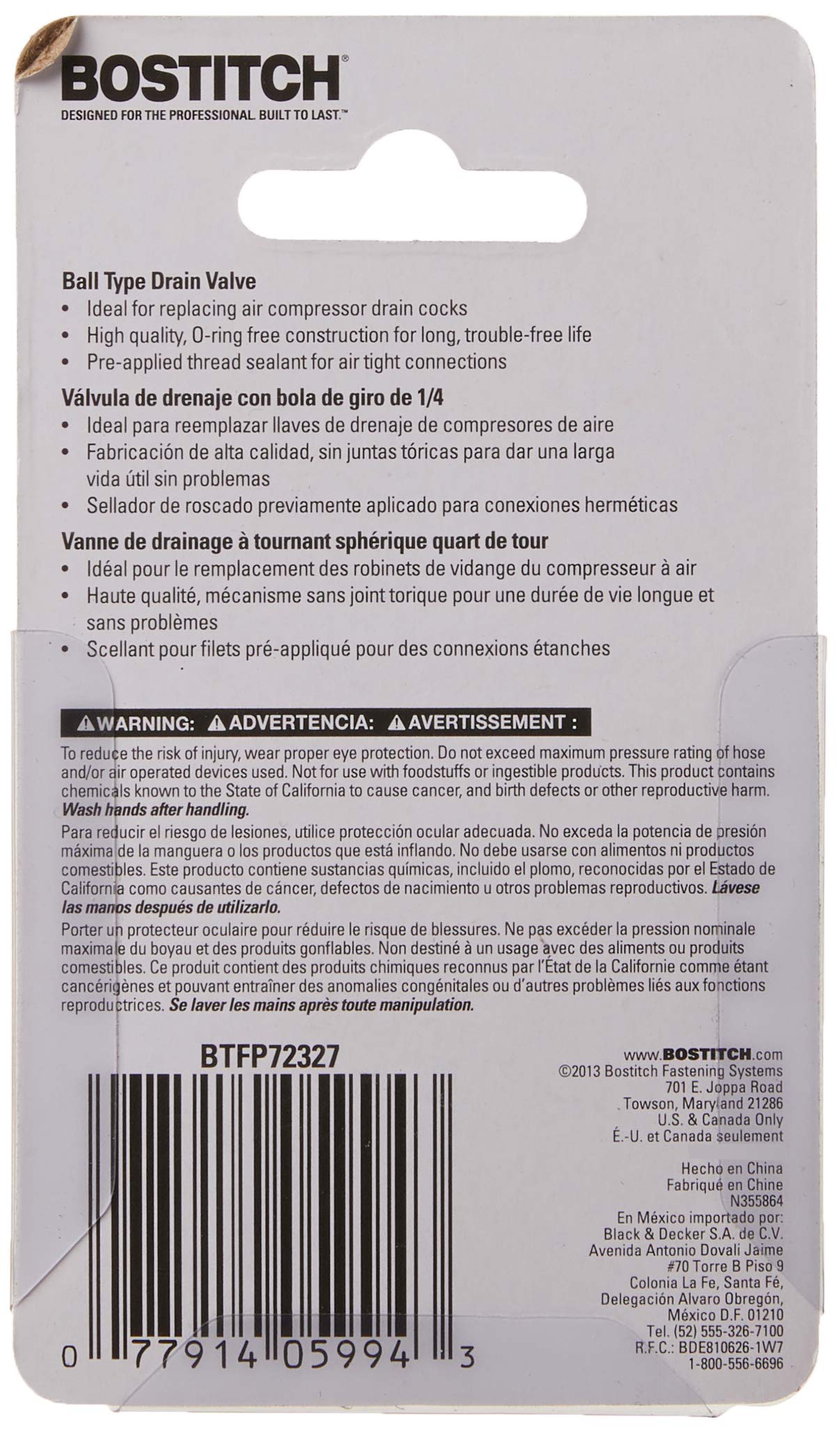 Bostitch BTFP72327 Ball Type Drain Valve