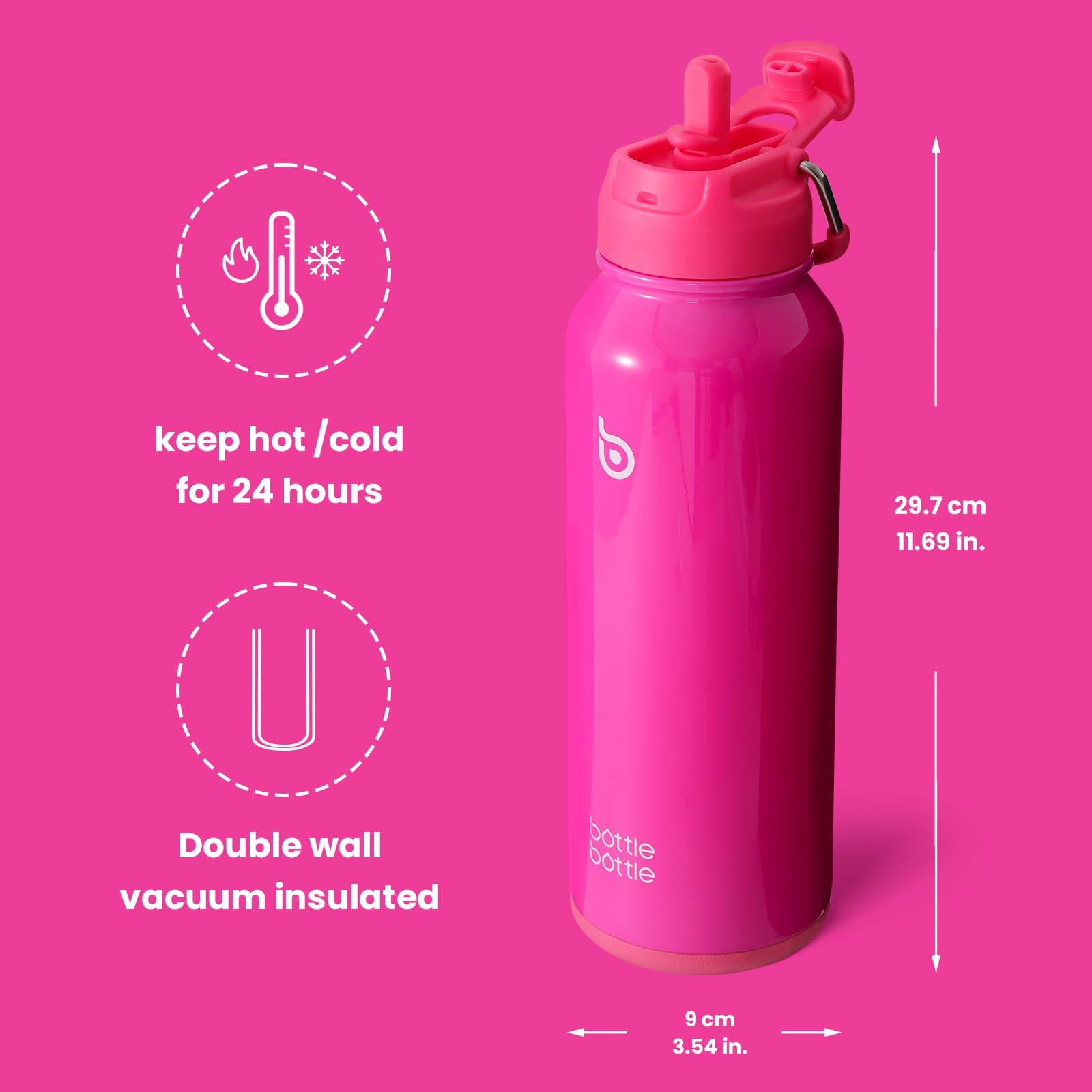 BOTTLE BOTTLE 40 oz sports water bottle stainless steel insulated water bottle with straw and pills holder (hot pink)