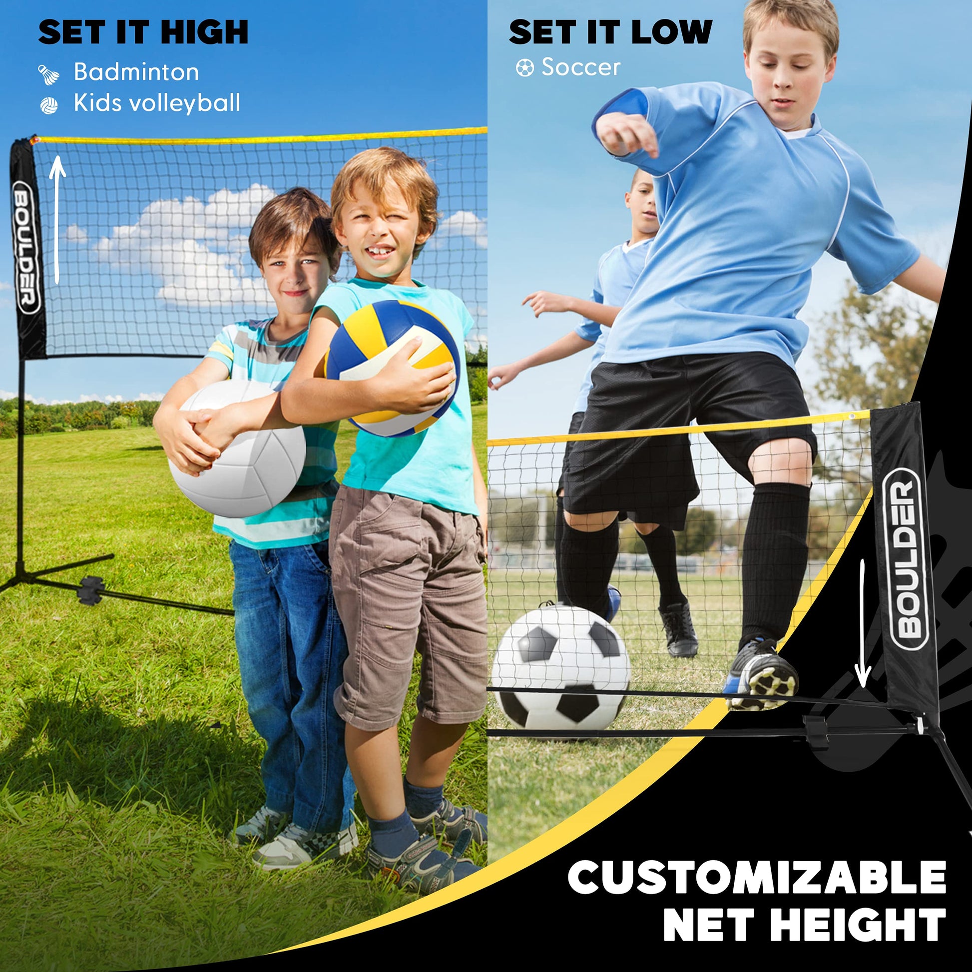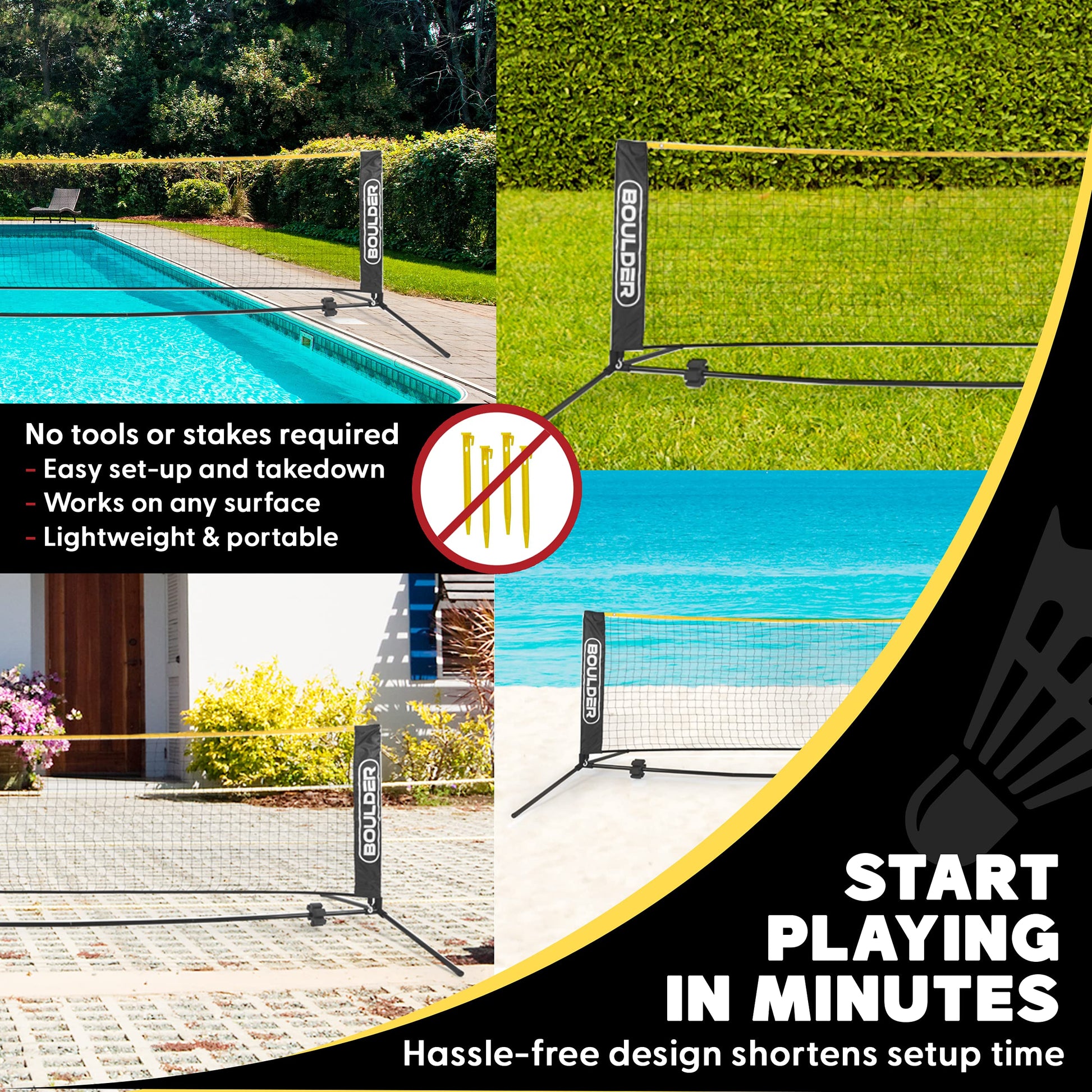 BOULDER Portable Badminton Pickleball Net - Foldable / Extendable Poles for Multiple Sports Heights (UP to 5 ft) - Ideal for Tennis, Pickleball, Soccer Tennis - Easy Setup (Black, 17 FT)
