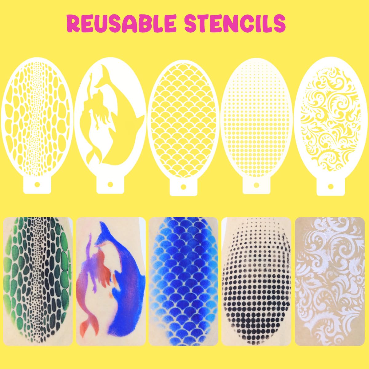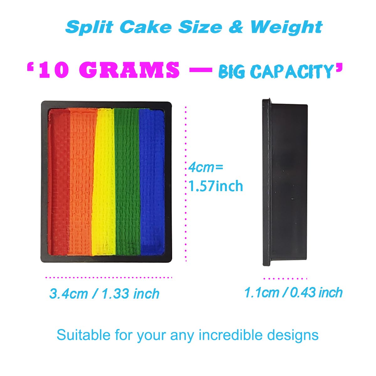 • The Split Cake kit contains 10 x 10gram Professional split cakes,2 x Vibrant color (black and white),4 x Professional brushes,5 x Professional PET Stencils.