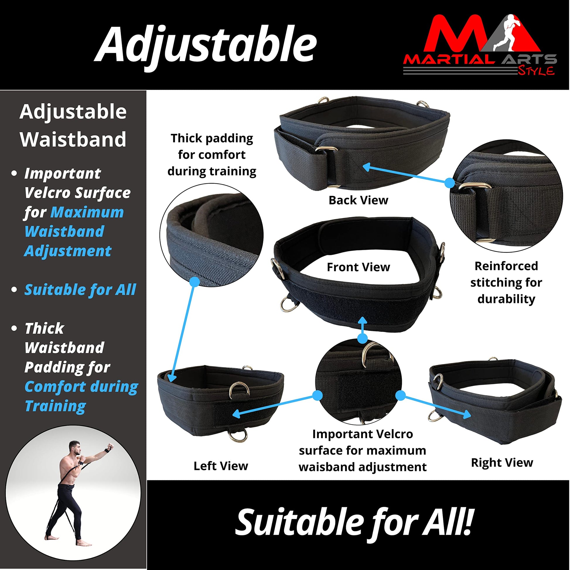 • SUITABLE FOR MOST AND EVERYWHERE - The boxing resistance bands are suitable to most body types because they are designed with an adjustable belt strap (MAX waist size = 39.2 inches for the belt) and adjustable ankle straps. This means the boxing resistance suit will fit you perfectly and will be comfortable to train with. It is also lightweight and compact because it comes with a perfectly fitted carry bag.