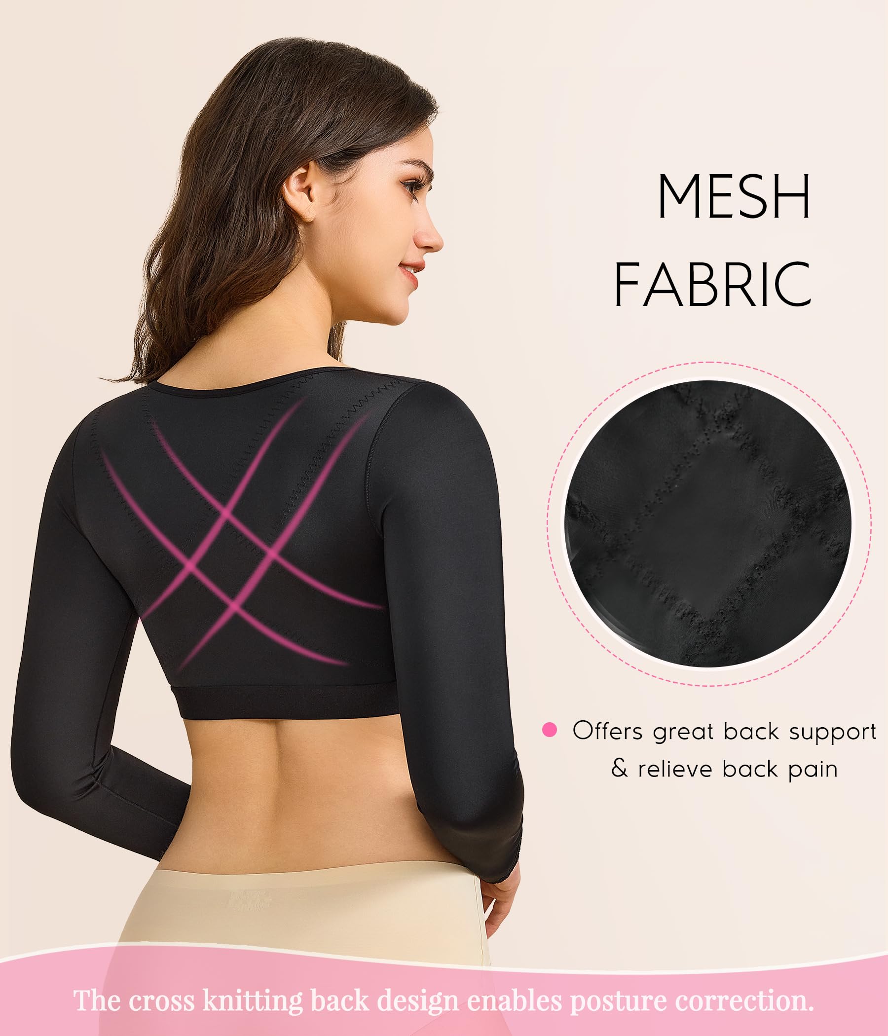 • MULTI-PURPOSE SLIMMING SHAPEWEAR. The upper arm shaper gives firm compression on your arms and back to smooth flab rolls. 2 X-type crossing layers on back area will help people who slouch relieve back pain and keep a straight posture, giving you a slimmer figure.