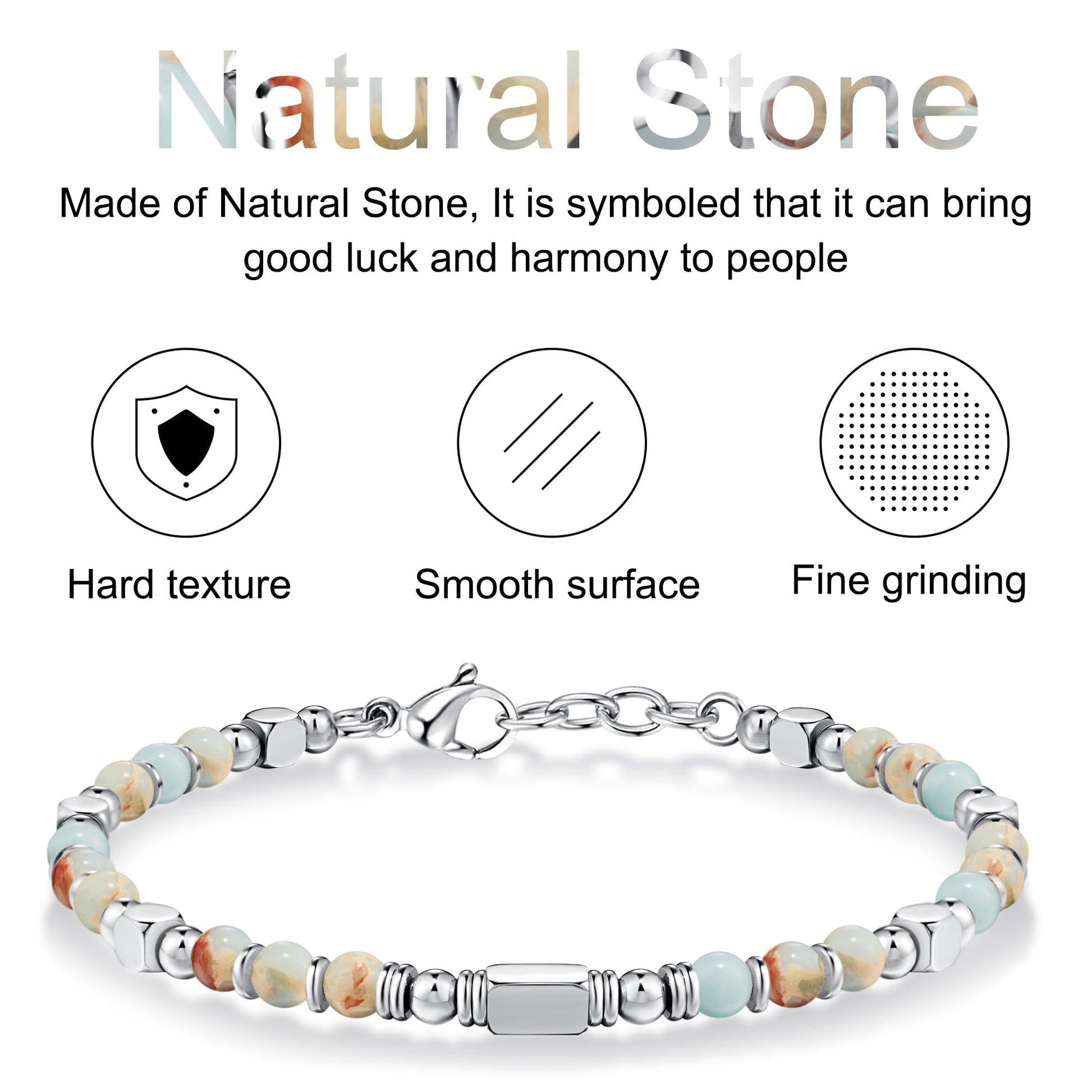 • 【Material】🌟 Our bracelets for women adorned with natural stone and stainless steel beads which is nickel-free, lead-free, non-irritating, low density and light weight. It evokes a sense of empowerment and elegance, making them a must-have accessory for the trendsetting woman of today