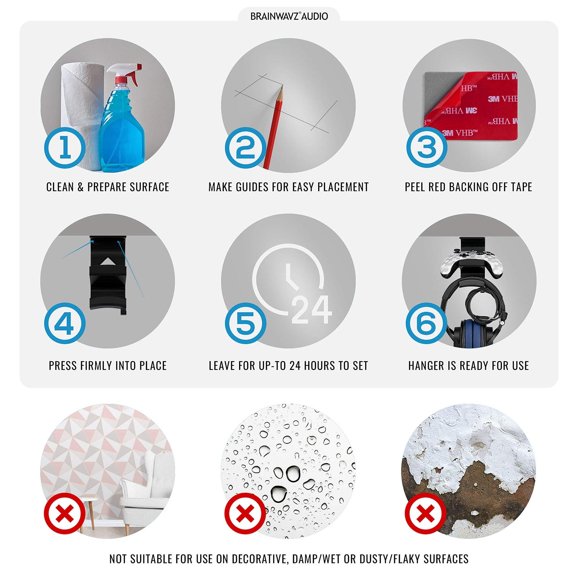 • SECURE INSTALLATION: Our Universal Game Controller & Headphone hanger mount comes with 3M VHBTM tape pre-fitted and can be installed almost anywhere - Under desks, shelves, cabinets, glass surfaces and many more. GoPro trusts VHB to secure their cameras during extreme activities, so you can be assured it won’t let you, or your controllers down. Max Weight Limit: 1.5kg / 3.3lbs.