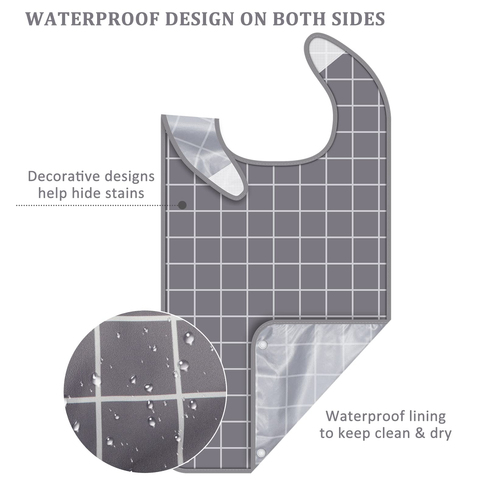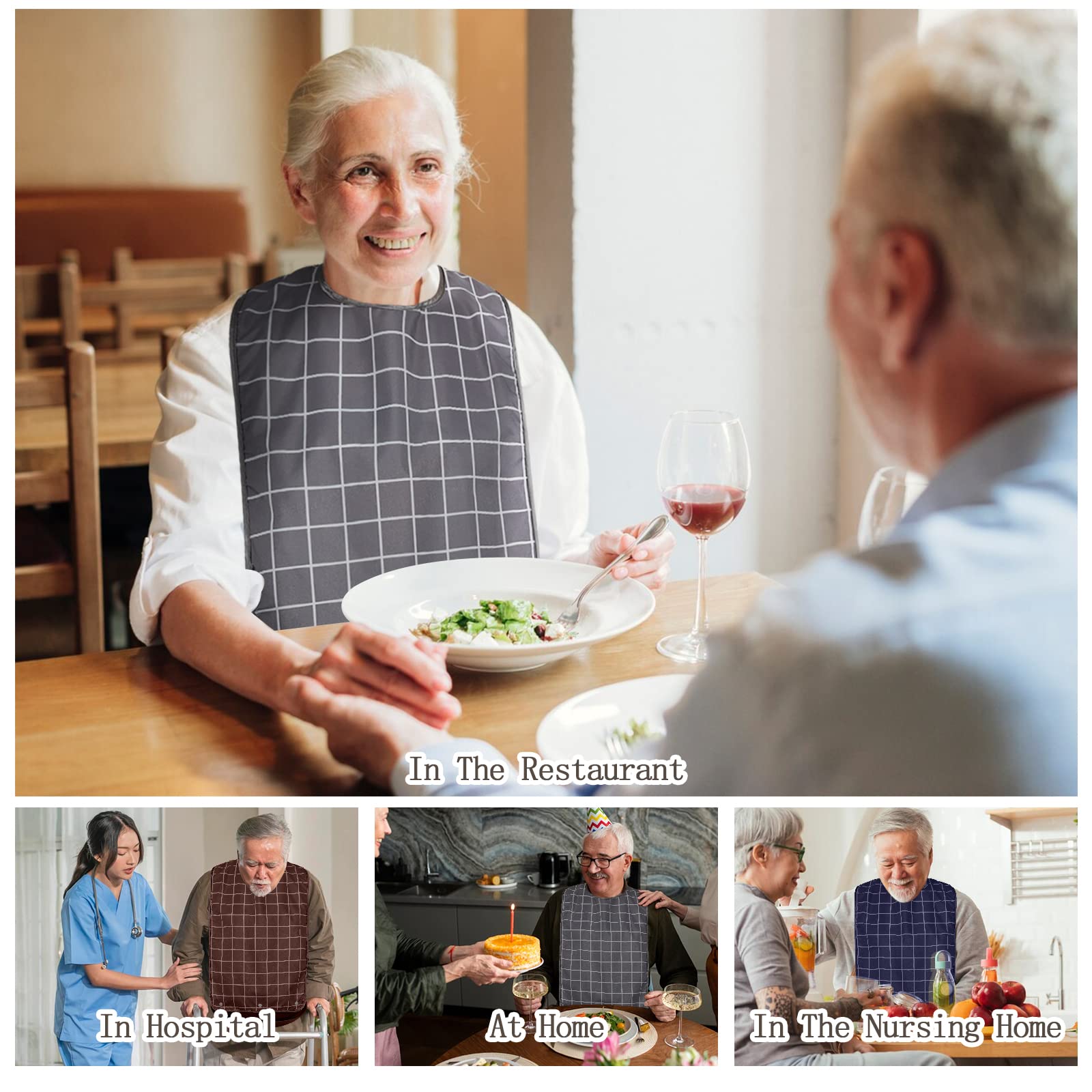 Bravace 4 Pack Adult Bibs for Eating Washable Reusable Waterproof Clothing Protector with Detachable Crumb Catcher, Bibs for Elderly Women and Men, Senior Citizen Feeding Bibs - Unisex