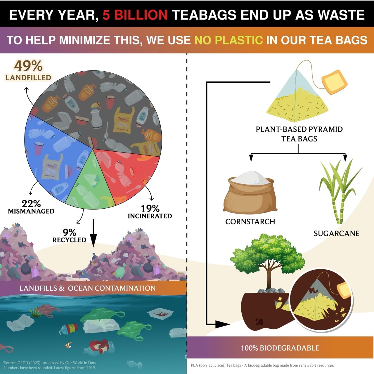 • FRESH AND DIRECT - Our supply chain ensures you get the freshest cup of tea at your doorstep in the shortest time from garden to table. Our teas are hand blended and consist of only the best ingredients and teas found globally. Our in-house master blenders ensure that every batch is tested for quality and taste so that you get the best. We use the freshest loose tea in our blends.