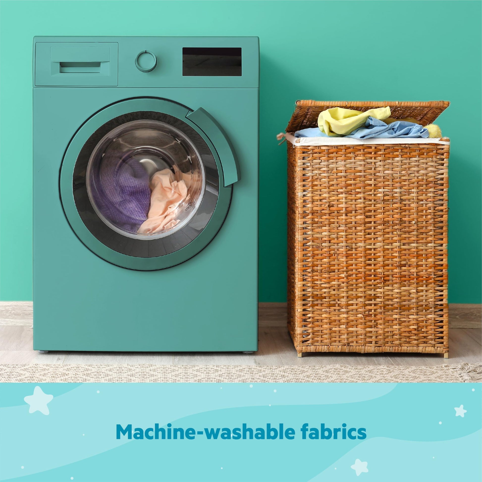 • Easy to clean. Fabric seat pad is machine washable. Wipe plastic and metal parts clean with damp cloth and mild soap; let air dry and do not immerse in water