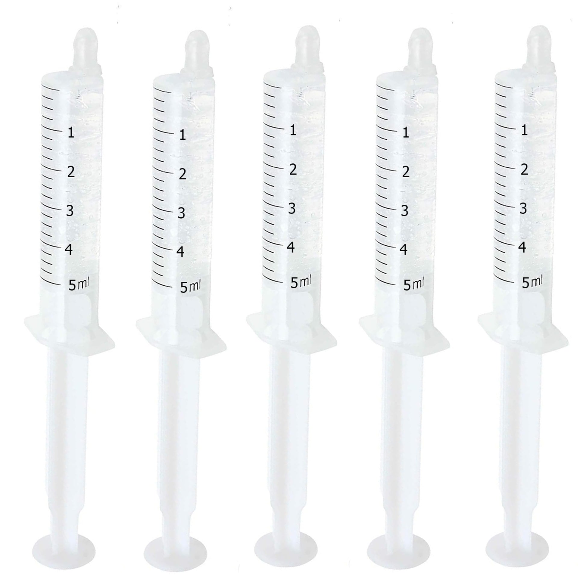 • Bright White Smiles offers 5 5 cc/ml Carbamide Peroxide Teeth Whitening Gel Syringes. Our XL Refill Syringes Are 2-5 Times the size of most competitors, allowing your tooth whitener to last much longer.