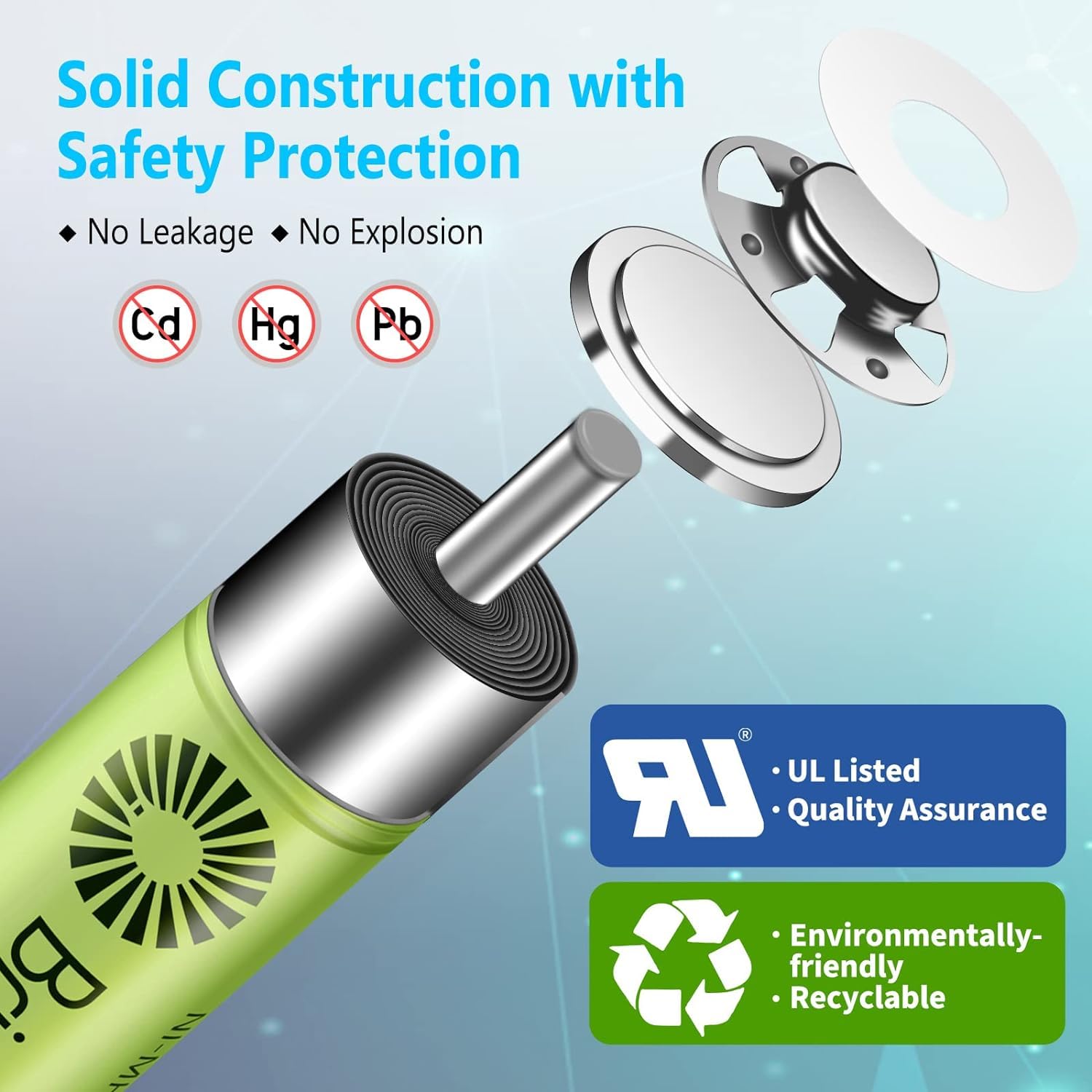 • 【 Solar and Standard Charging 】These rechargeable NiMH batteries can be charged via solar or standard charging units. Using a fast charger is a better choice since it has a large capacity