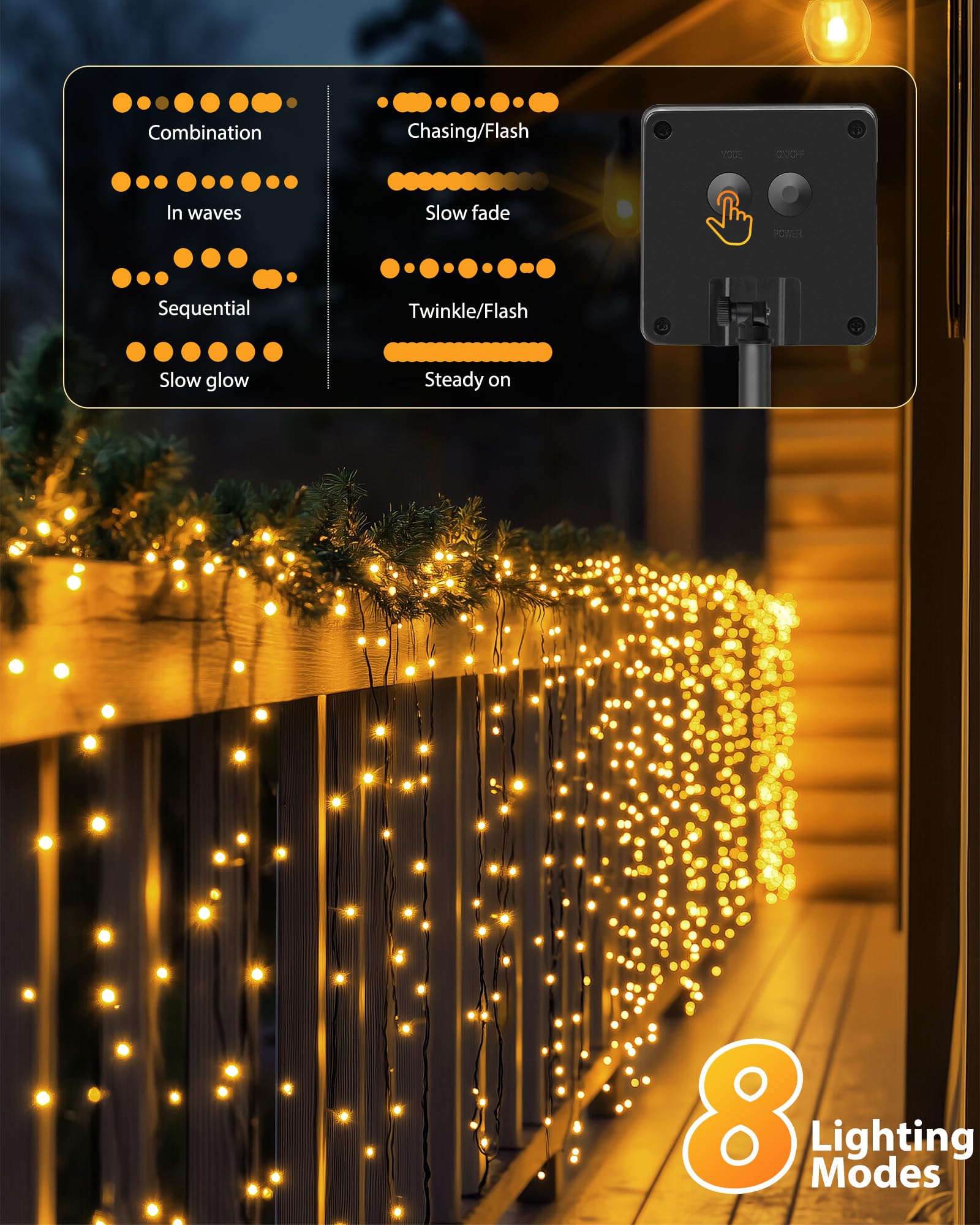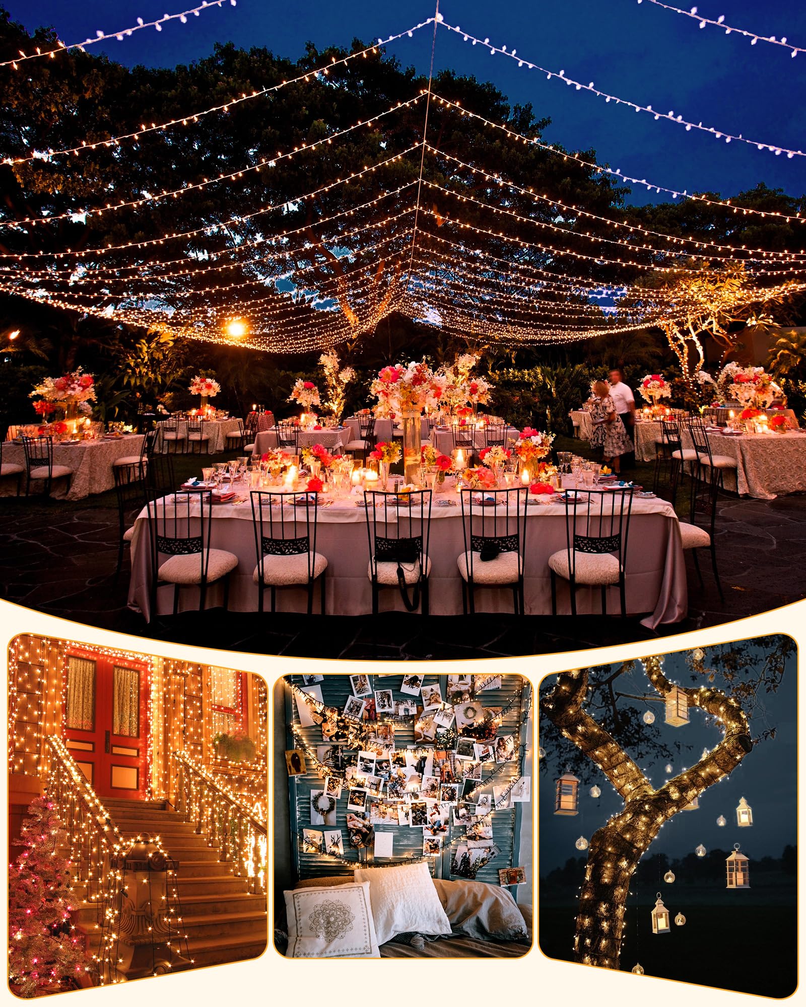 • 【Widely Used in Various Occasions】Our solar string lights for outside will emit a bright light at night, not only decorate gardens, courtyards, trees, patios, roofs, porches, fences, bistros, barbecue, but also can be used for weddings, birthday, Christmas, New Year parties, creating a warm and joyful holiday atmosphere.