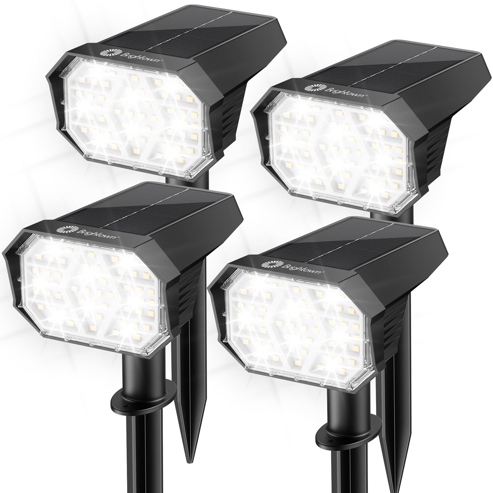 Brightown 4Pack Solar Spot Lights Outdoor with 58 LED & 1800mAh, IP67 Solar Lights Outdoor Waterproof with 3 Light Modes, 2-in-1 Dual Use Outdoor Solar Lights for Yard, Garden and Pathway (Cool White)