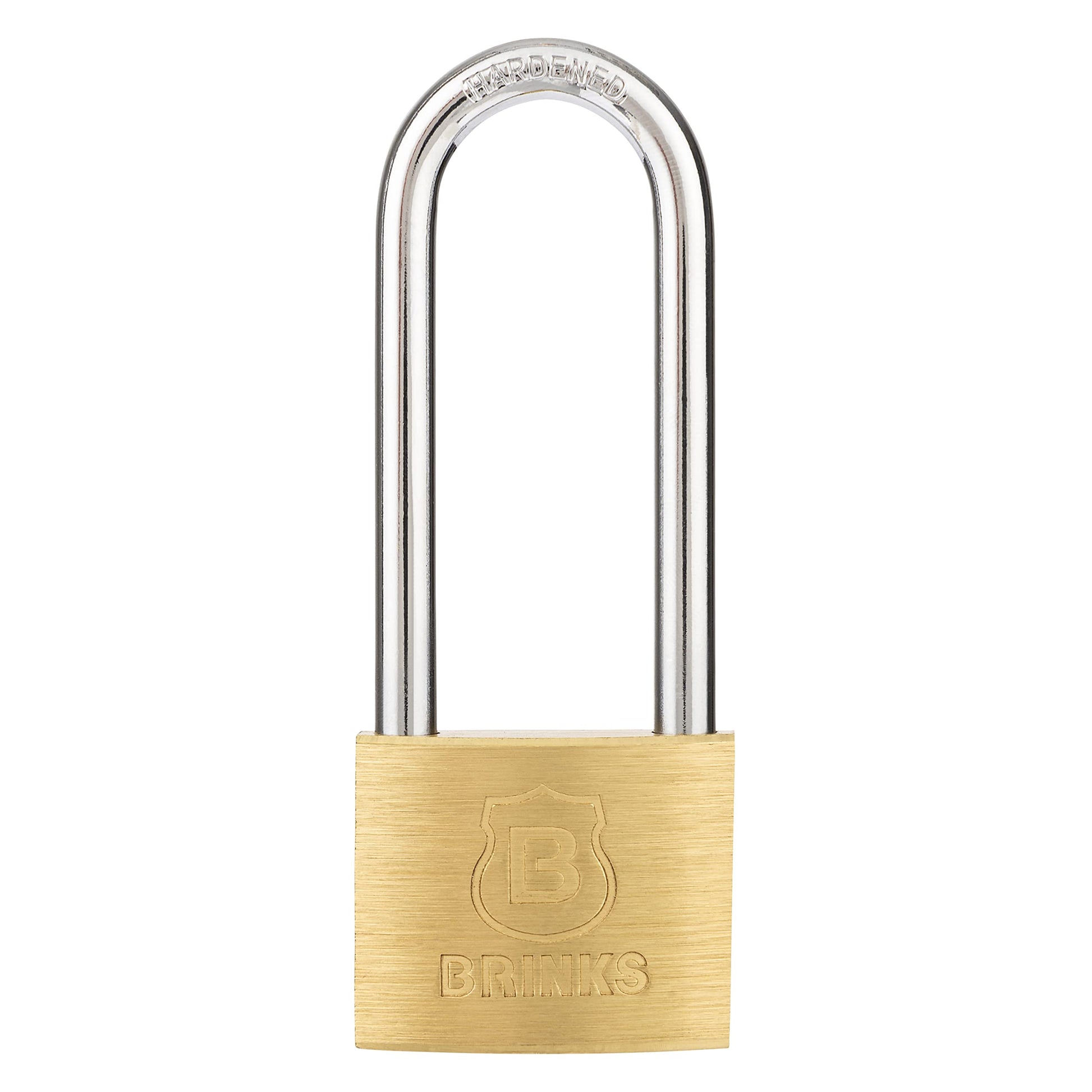 • FEATURES - Brink’s Solid Brass Padlock has a 40mm solid brass body with a long chrome plated, hardened steel shackle for cut resistance.