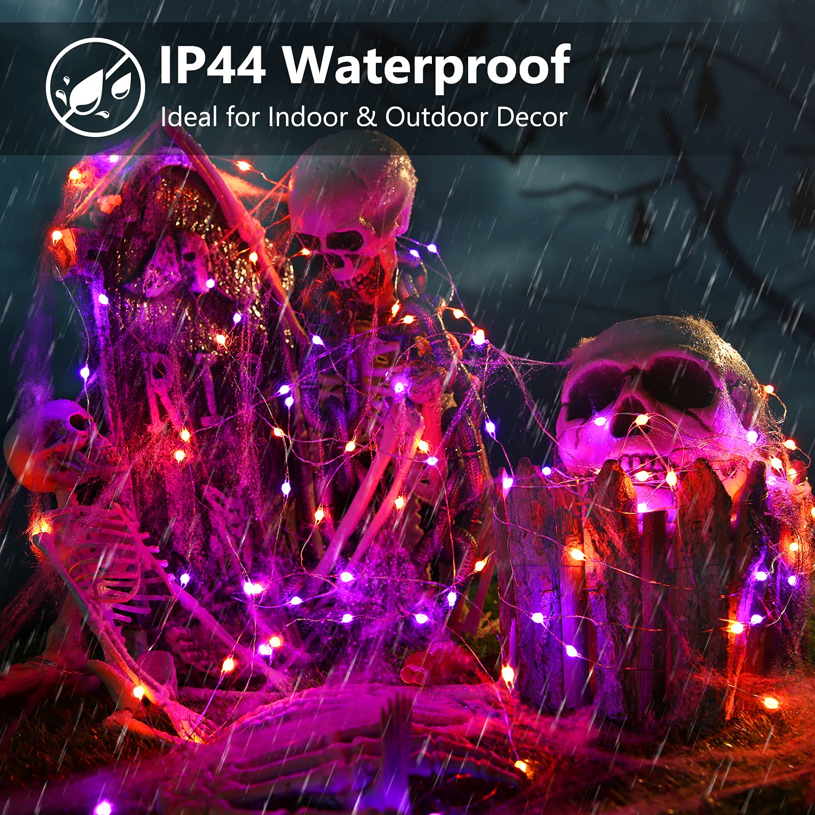• IP65 WATEROPROOF BATTERY CASE: Battery case equipped with a sealed rubber edge design, ip65 waterproof grade, both the orange & purple halloween lights string and battery case are water resist, can withstand all kinds of weather, make it perfect to be used indoor and outdoor.