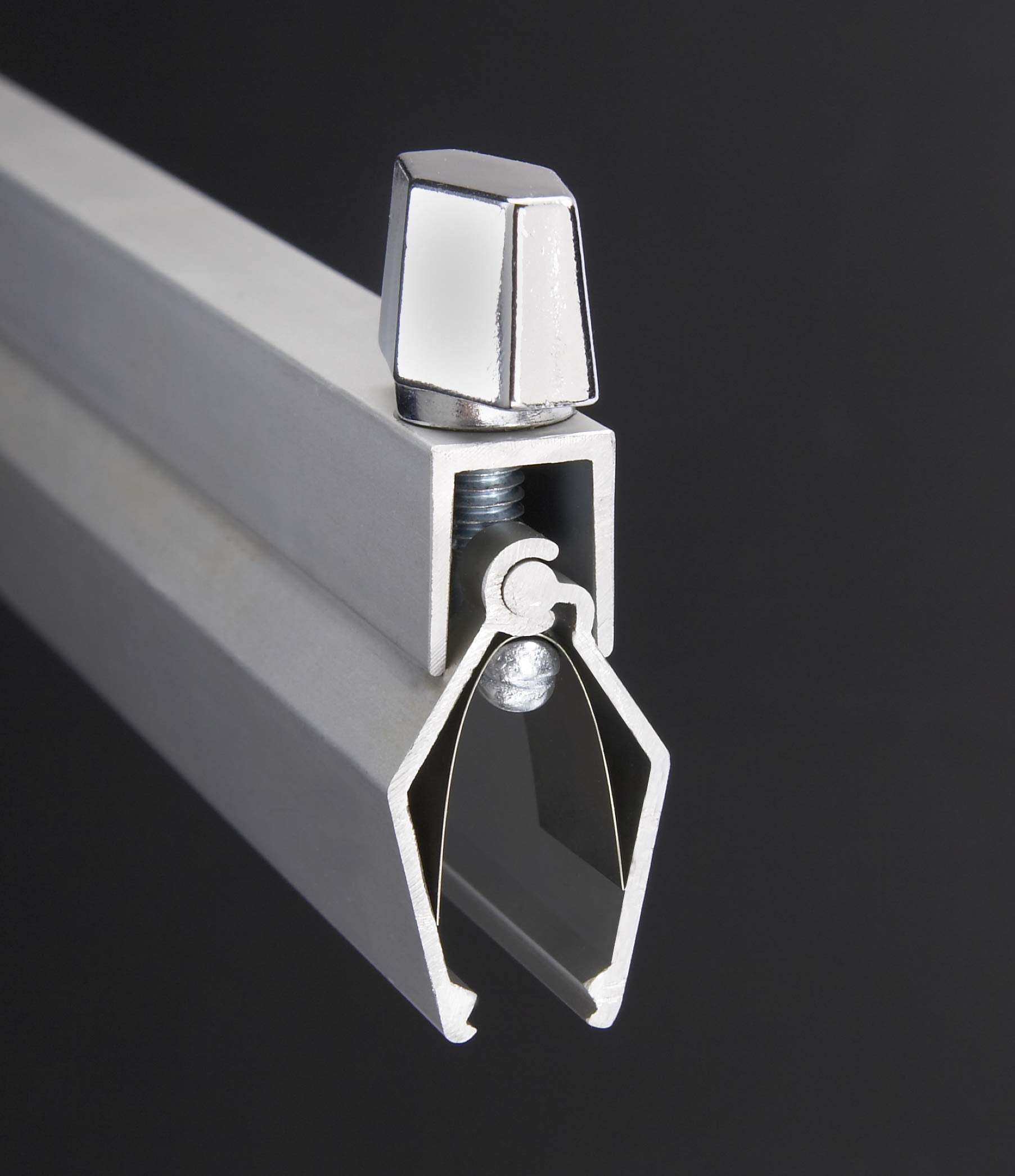 Details: Extruded anodized aluminum clamps will hold up to 100 sheets each securely without punching or stapling. Internal steel spring holds clamp open for easy loading. Heavy duty chrome plated steel wing knobs open and close the clamp. Chrome plated steel clip includes a spring to clip onto pivot brackets. Includes Snap-On clear plastic label holder and labels. Clamps are compatible with all other major manufacturers' racks.