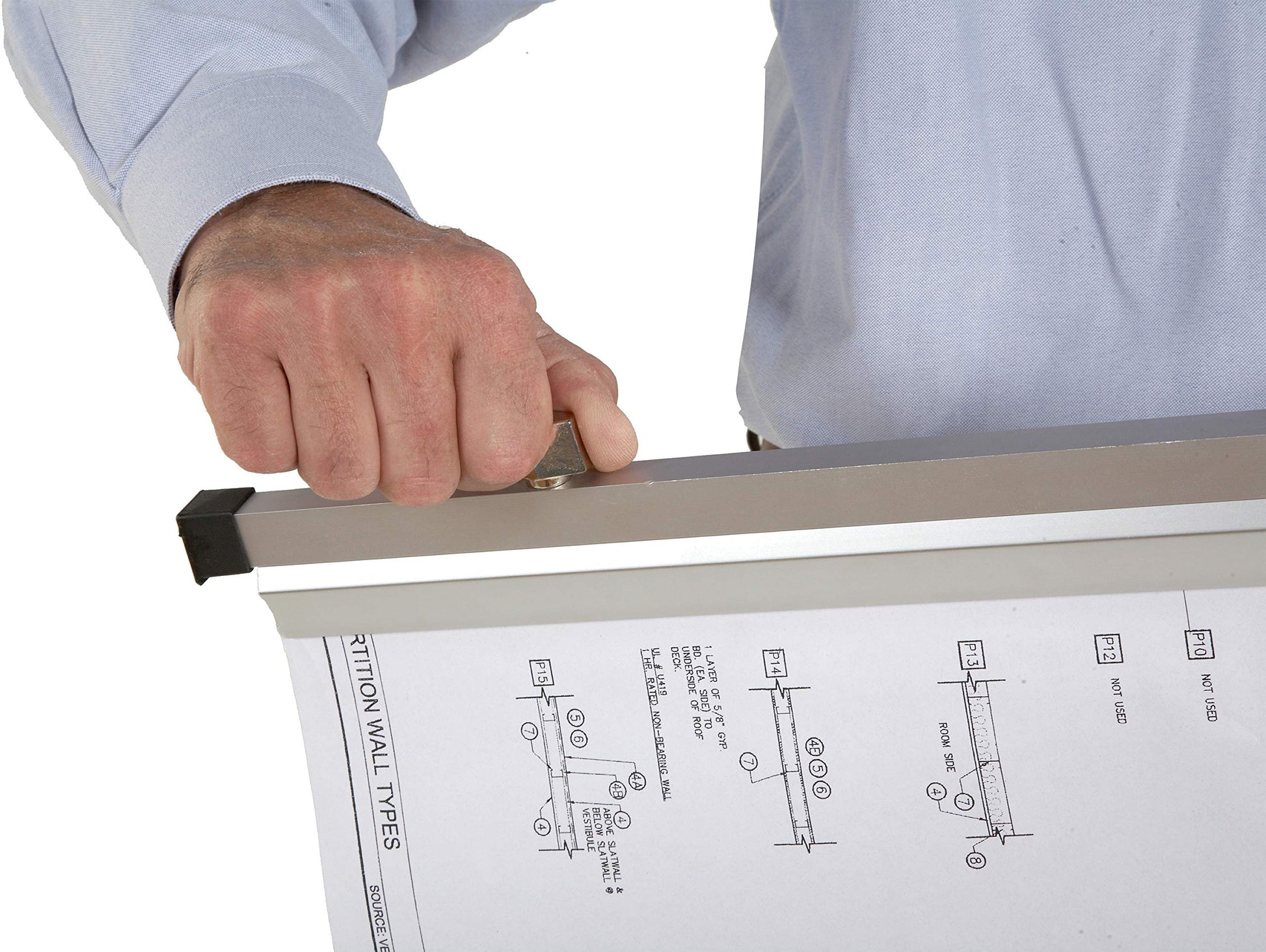 • Easy Load Design: A steel spring is built into each blueprint holder to hold the clamp open for easy loading and removal of documents. Each print clamp is designed to hold multiple large projects worth of architectural drawings, blue prints, and engineering drafts.