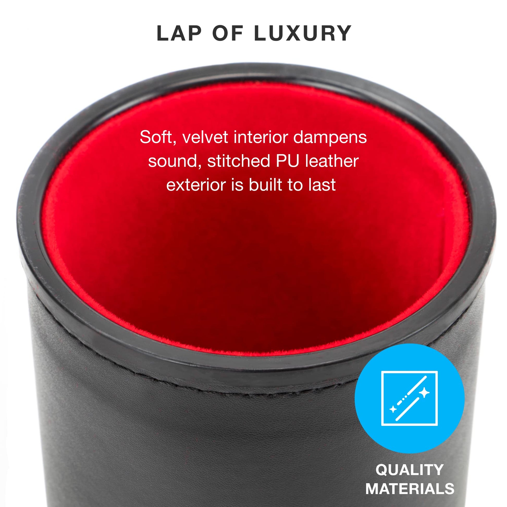 • Top Quality: Soft, padded interior of the dice cups dampens the sound of rolling dice, the vibrant pop of color will look classy on any game table. The quality PU leather exterior is built to last