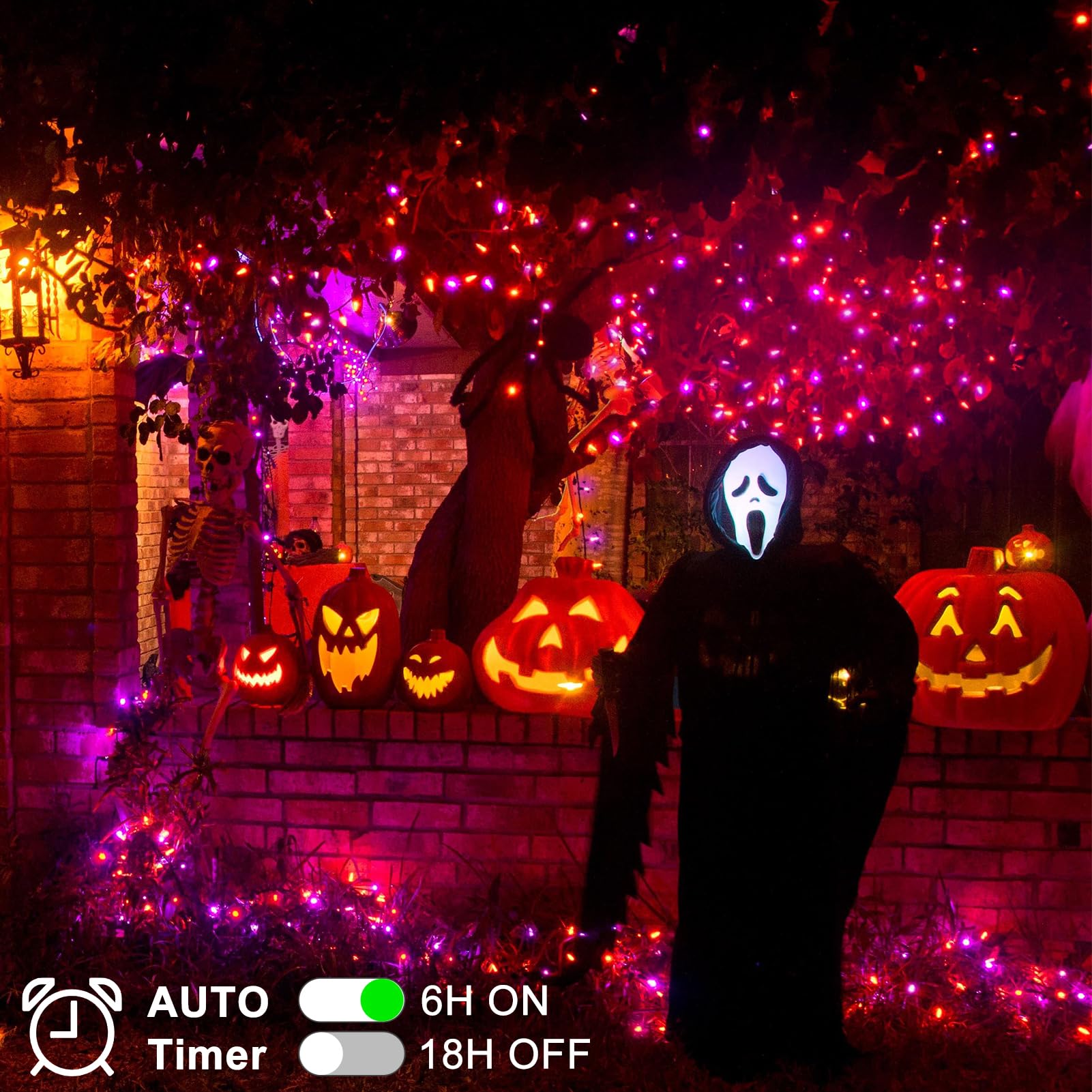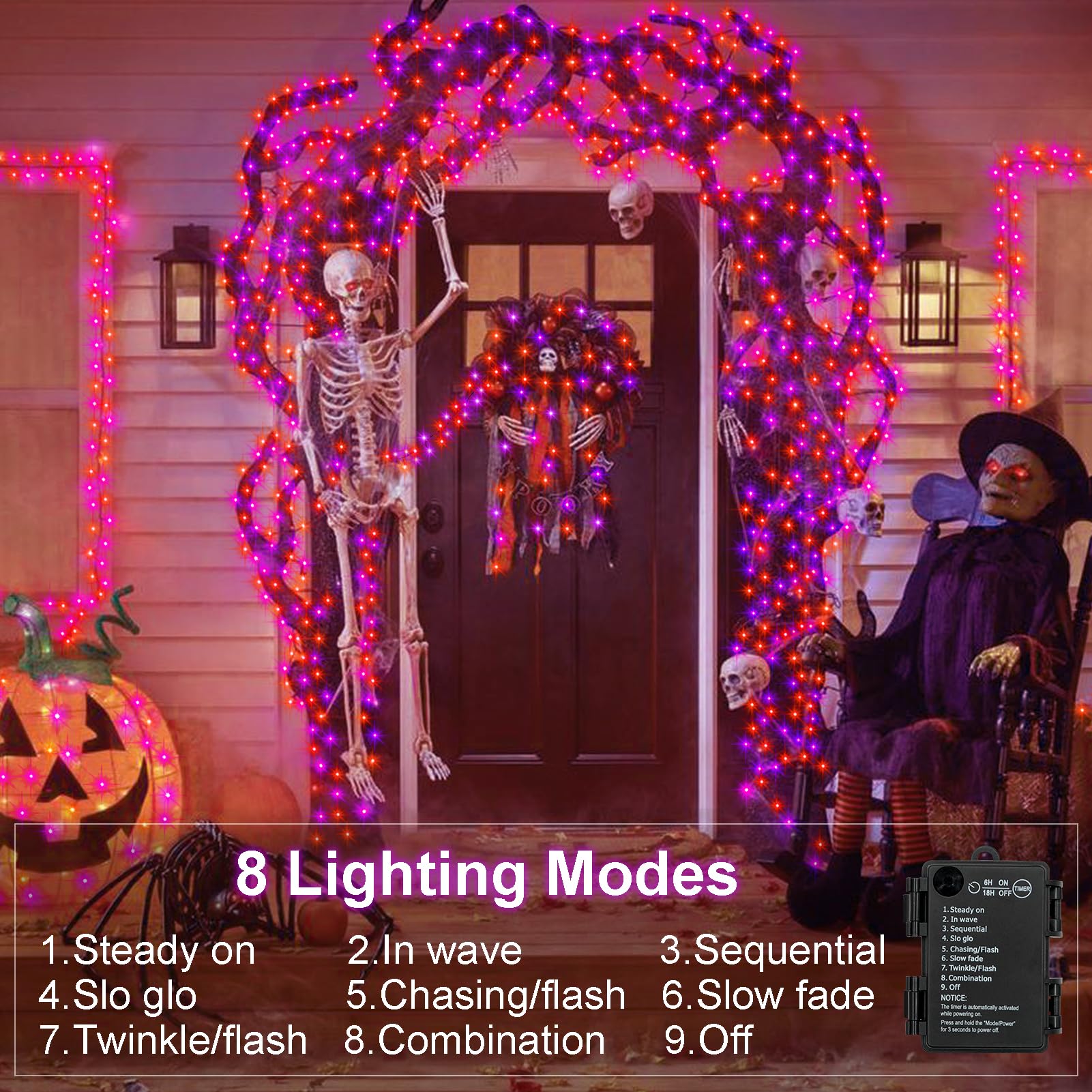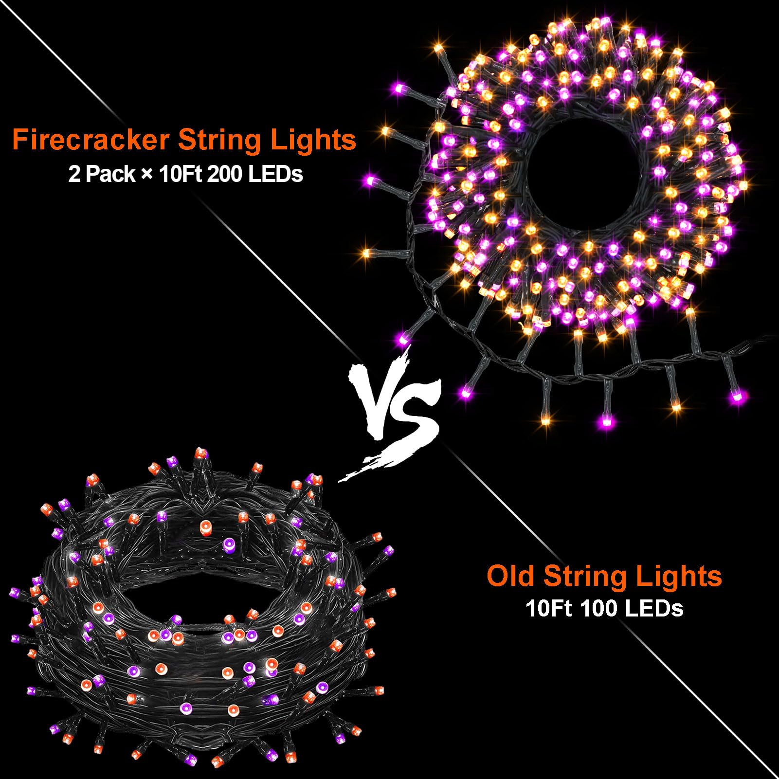 • Perfect Halloween Decorations: Halloween lights include purple and orange color, black wire string lights can blend well with trees, can be hung in your windows,garden, patio, porch or fence, ideal for welcome a 'trick or treaters' to your home