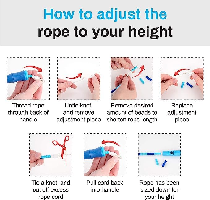 • BAMBOO-STYLE HANDLES: The handles on this jump rope for kids and adults are styled to be durable but comfortable. The 8-inch-long handles allow hands of any size to grip the rope and make performing tricks like arm crossovers a breeze.