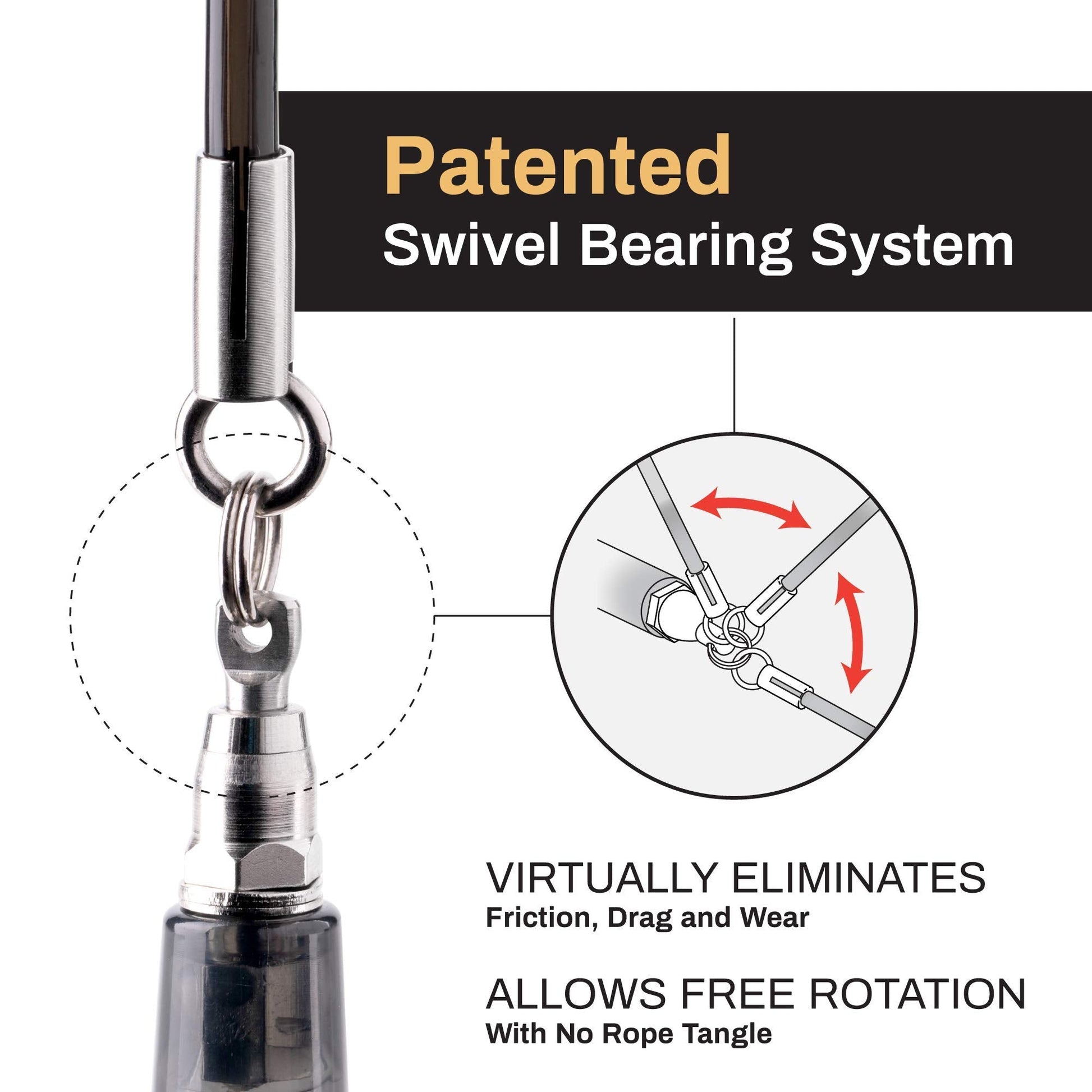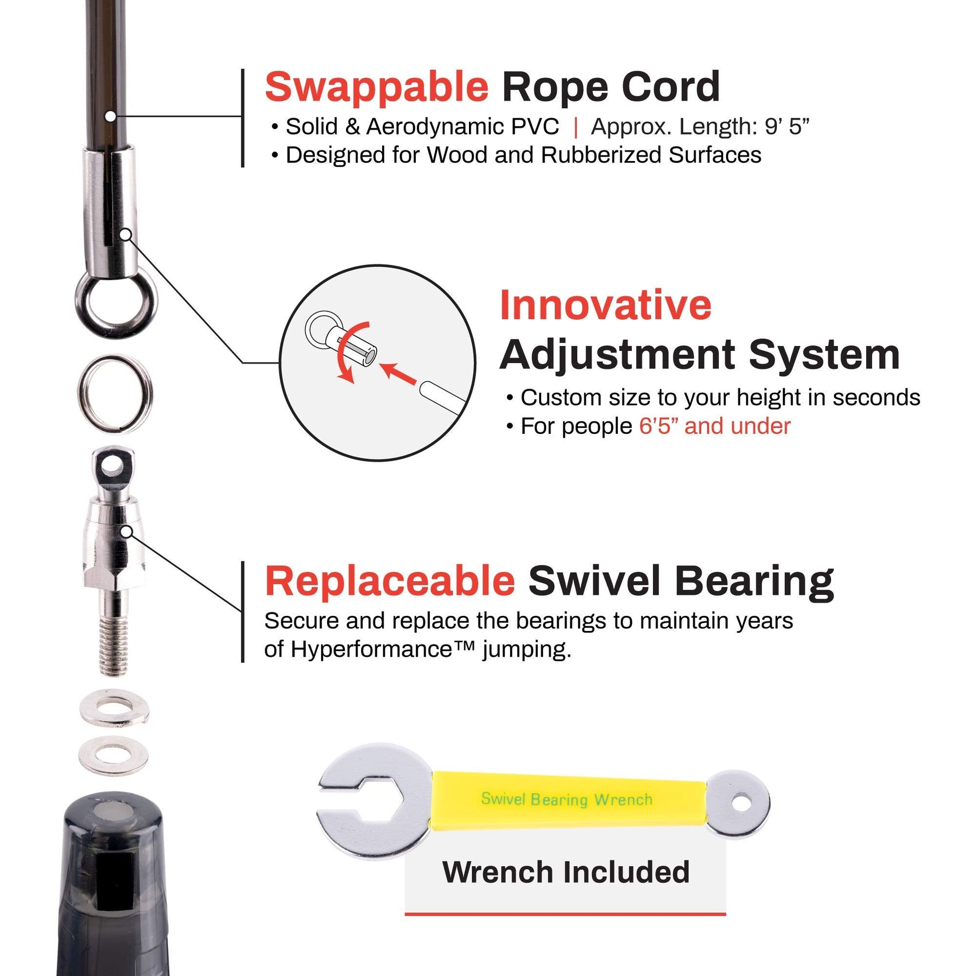 • INNOVATIVE & PATENTED SWIVEL-BEARING TECH: Our skipping rope comes with our innovative and patented swivel bearing system that is technically engineered for eliminating friction, drag, tangling and allows smooth turning action in all directions. Includes our swivel-bearing wrench that is specifically designed to secure and replace the bearings.