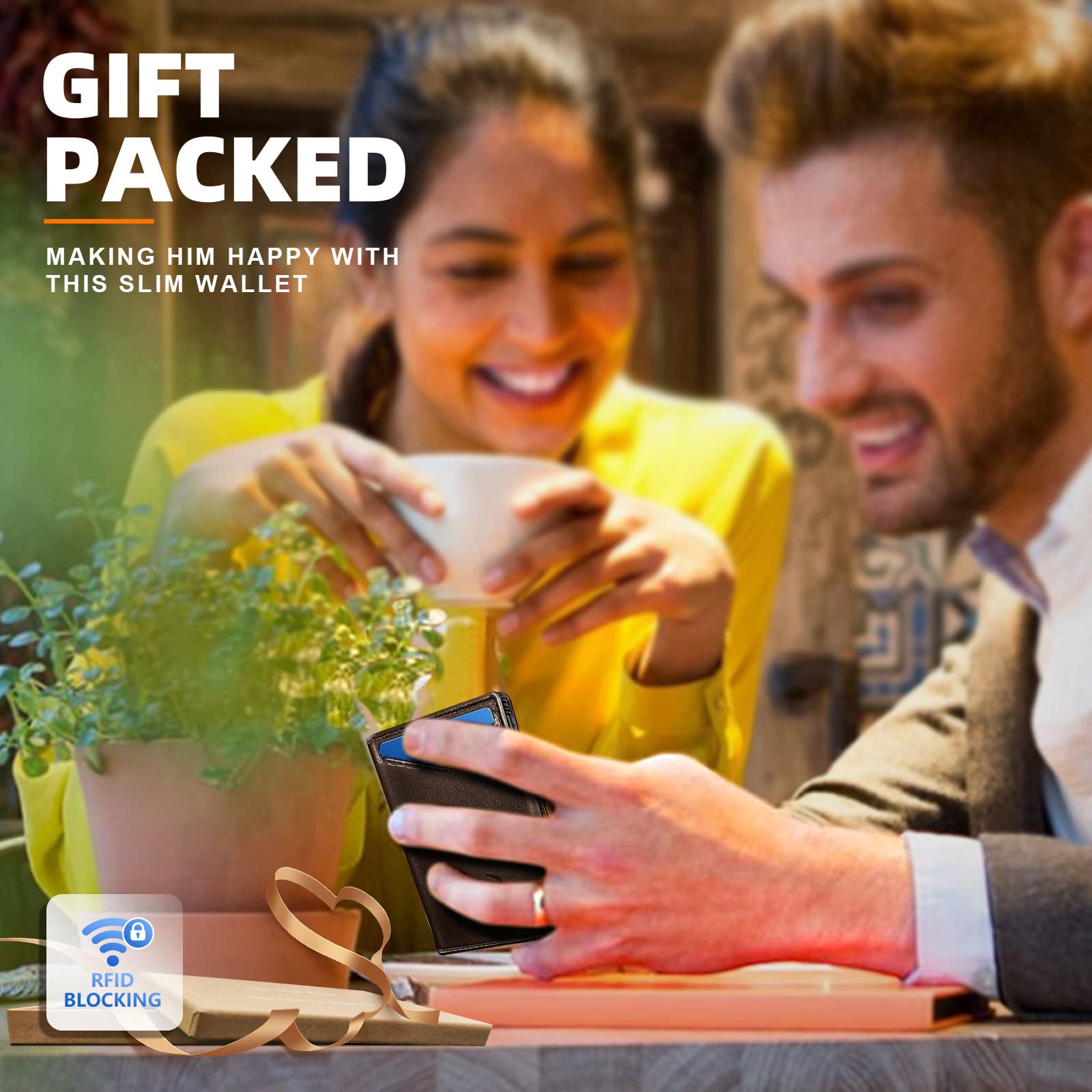 BULLIANT Men Wallet Gift Boxed,Slim Front Pocket Wallet Money Clip Card Holder 3.8"x2.7",Pop-up Access